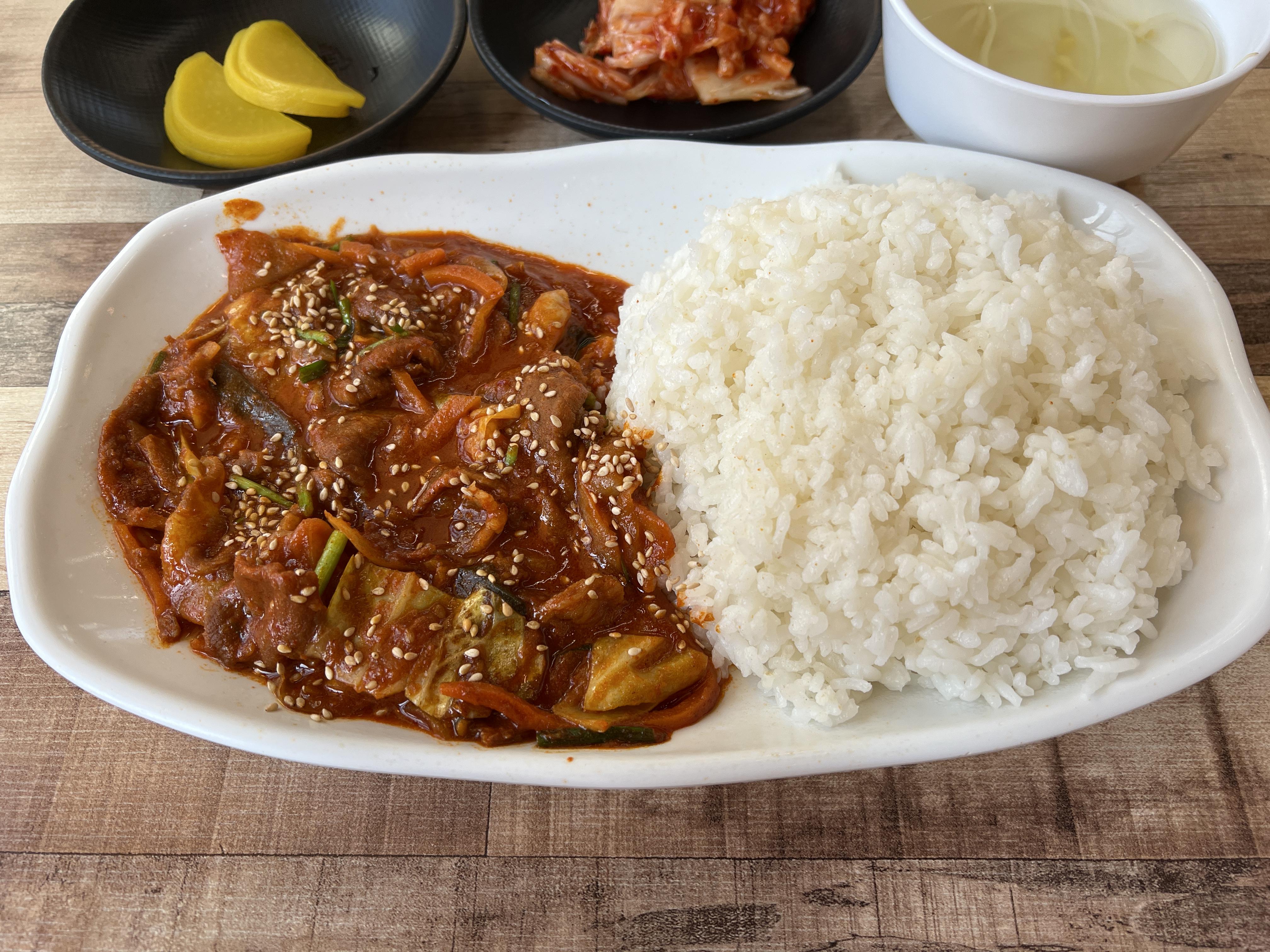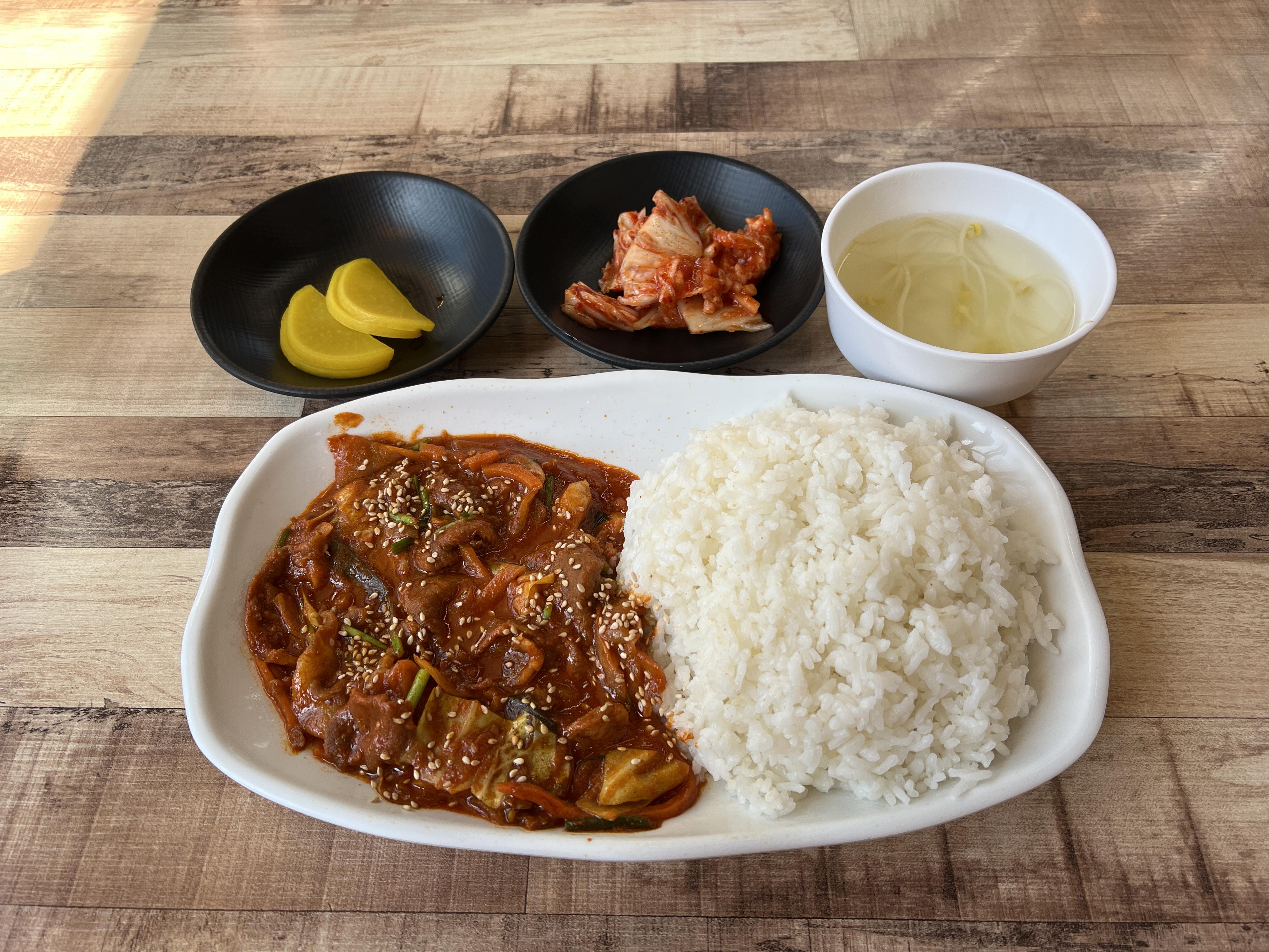 바로!! 제육덮밥입니다. 제육덮밥은 밥도 나오고 소스도 맛있었지만 고기의 양이 적어서 아쉬웠습니다. 고기와 소스에 비해서 밥의 양이 조금 많은 느낌입니다. 하지만 이것 또한 맛있습니다.