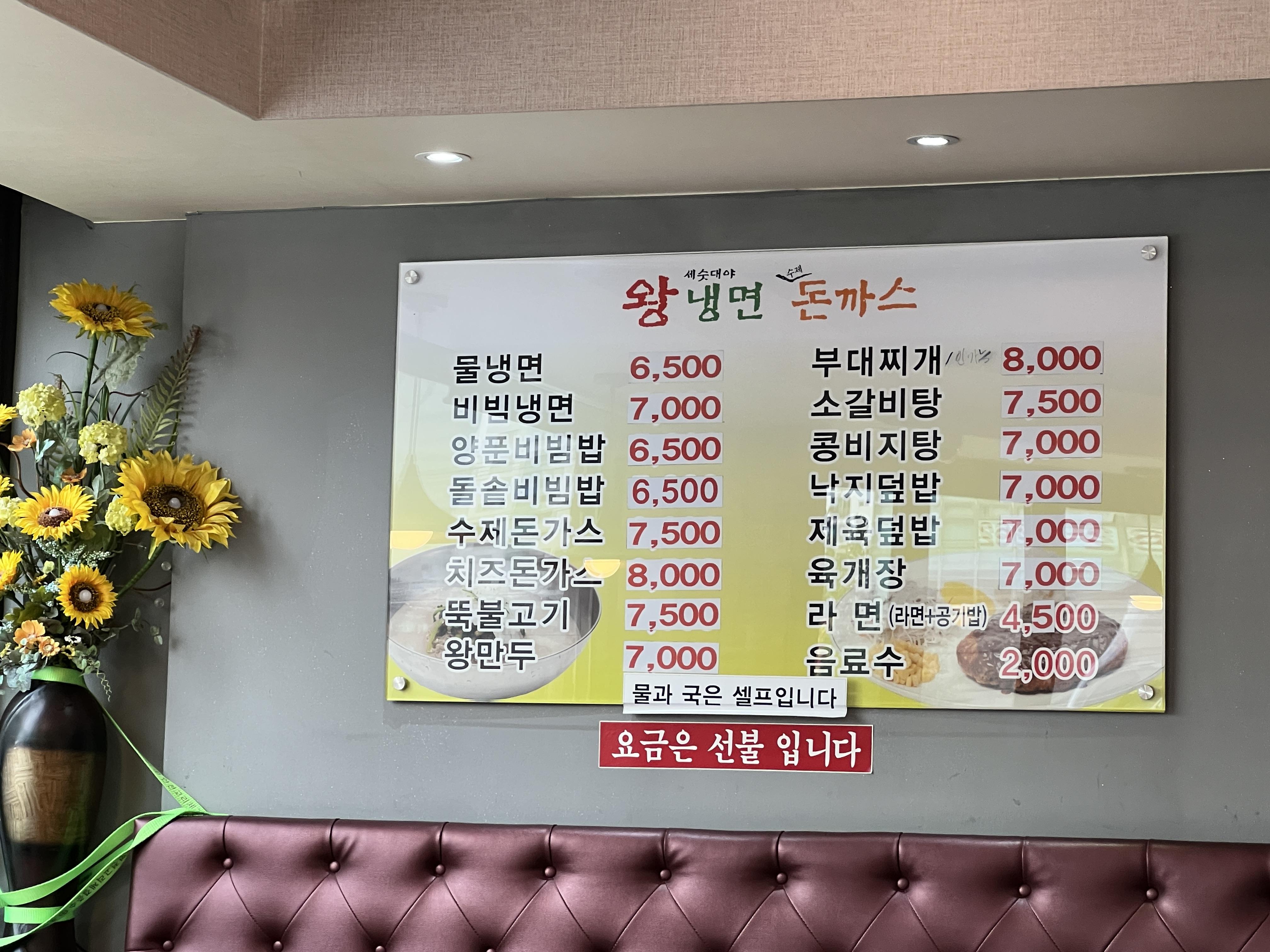 정식 명칭은 세숫대야 왕냉면 수제돈까스입니다만 세숫대야는 빼고 왕냉면수제돈까스로 많이 불립니다.