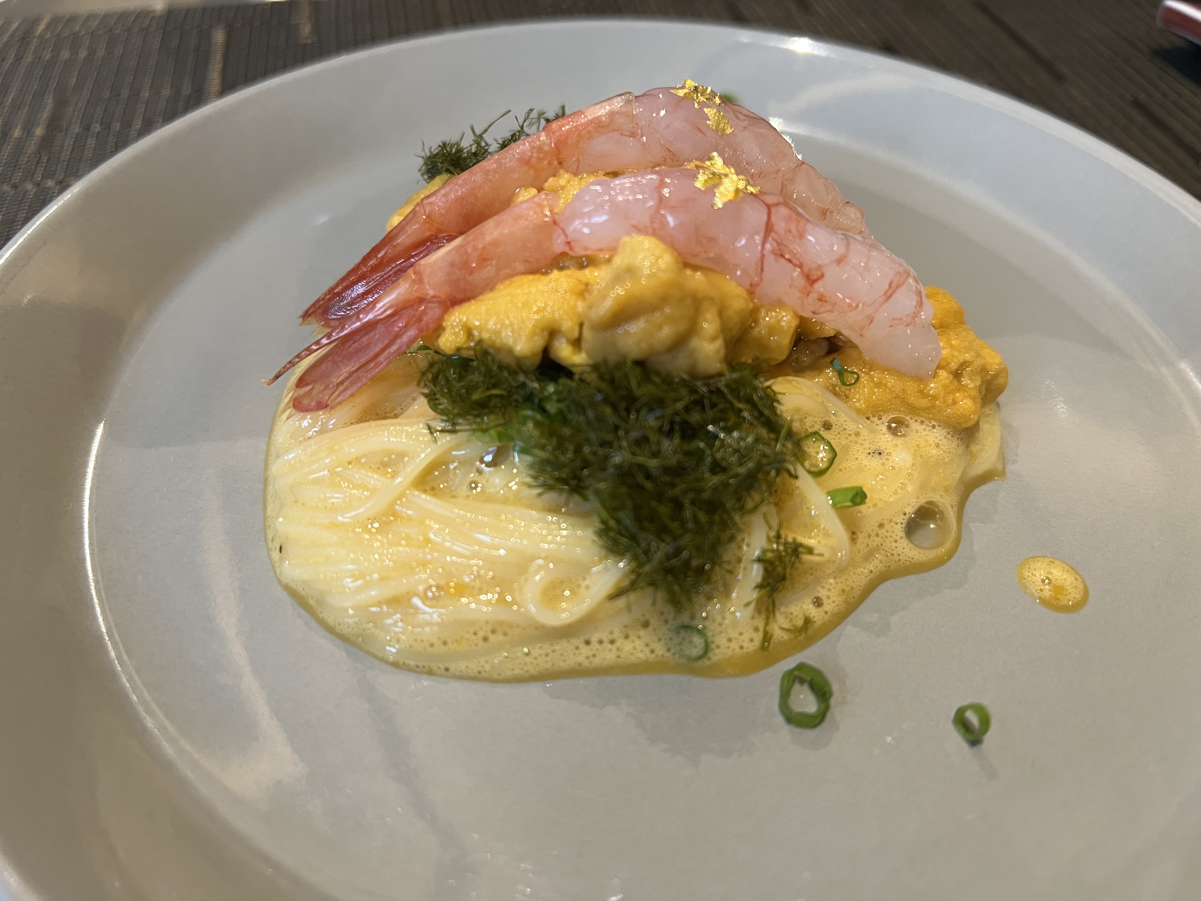 하단에서 우니와 백된장을 사용하여 달큼합니다. 소스에는 우니가 98% 정도 들어갔다고 생각하면 될 정도로 많이 들어 있었습니다. 소스 위에 추가 우니와 감태, 속초 앞바다에서 잡은 통발 단새우에 금박을 올렸습니다. 단새우를 숙성시켜 달큼한 맛이 느껴져서 너무 맛있었습니다. 우니는 계약된 어선을 통해 들어와서 유통 시간을 줄이고 저렴하게 구입하여 푸짐하게 제공할 수 있다고 합니다. 정말 우니파스타에 들어간 우니만 해도 99,000원이 아깝지 않았습니다.