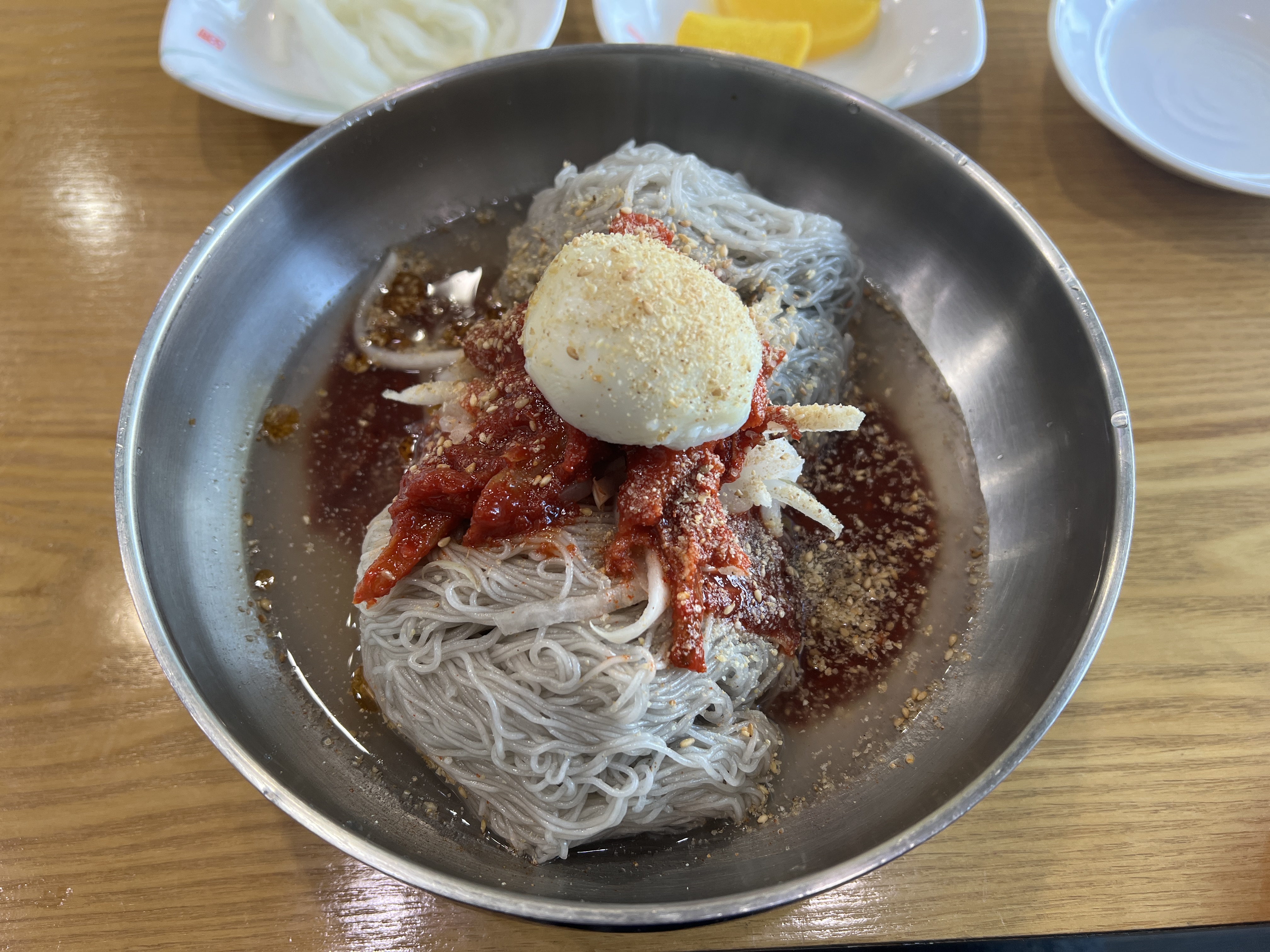 3번 리필해 먹은 건 비밀입니다. ㅎㅎ 단, 육수가 자극적이지 않기 때문에 비빔냉면을 먹고 나서 마시면 맛이 느껴지지 않으니 꼭 식사 전에 맛보시기 바랍니다.