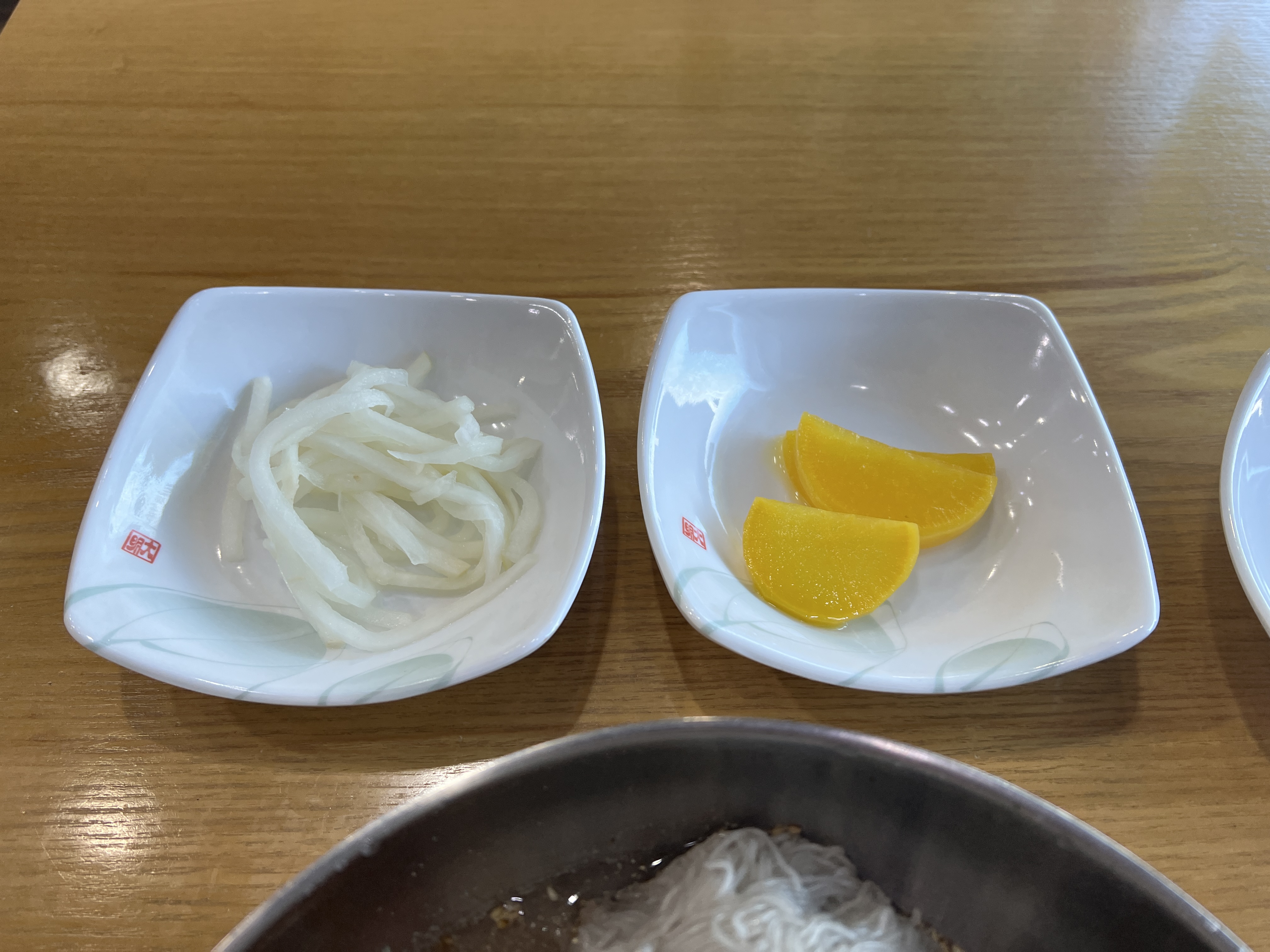 반찬은 원래 무채만 나오는 듯하였으나, 저는 만두를 주문하여 단무지를 함께 주신 것 같습니다.