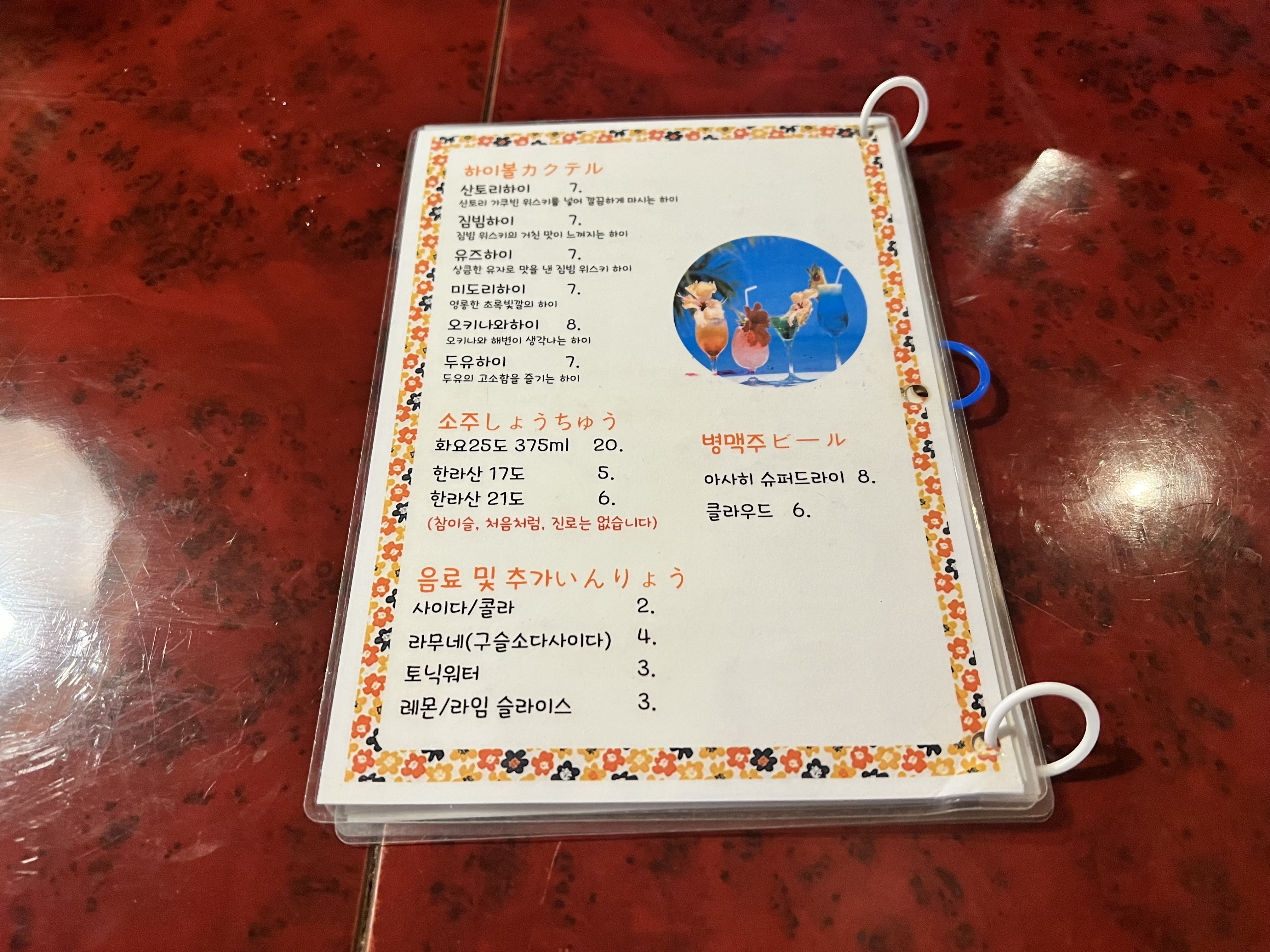소주는 한라산만 있으며 진로, 참이슬, 처음처럼은 없습니다.