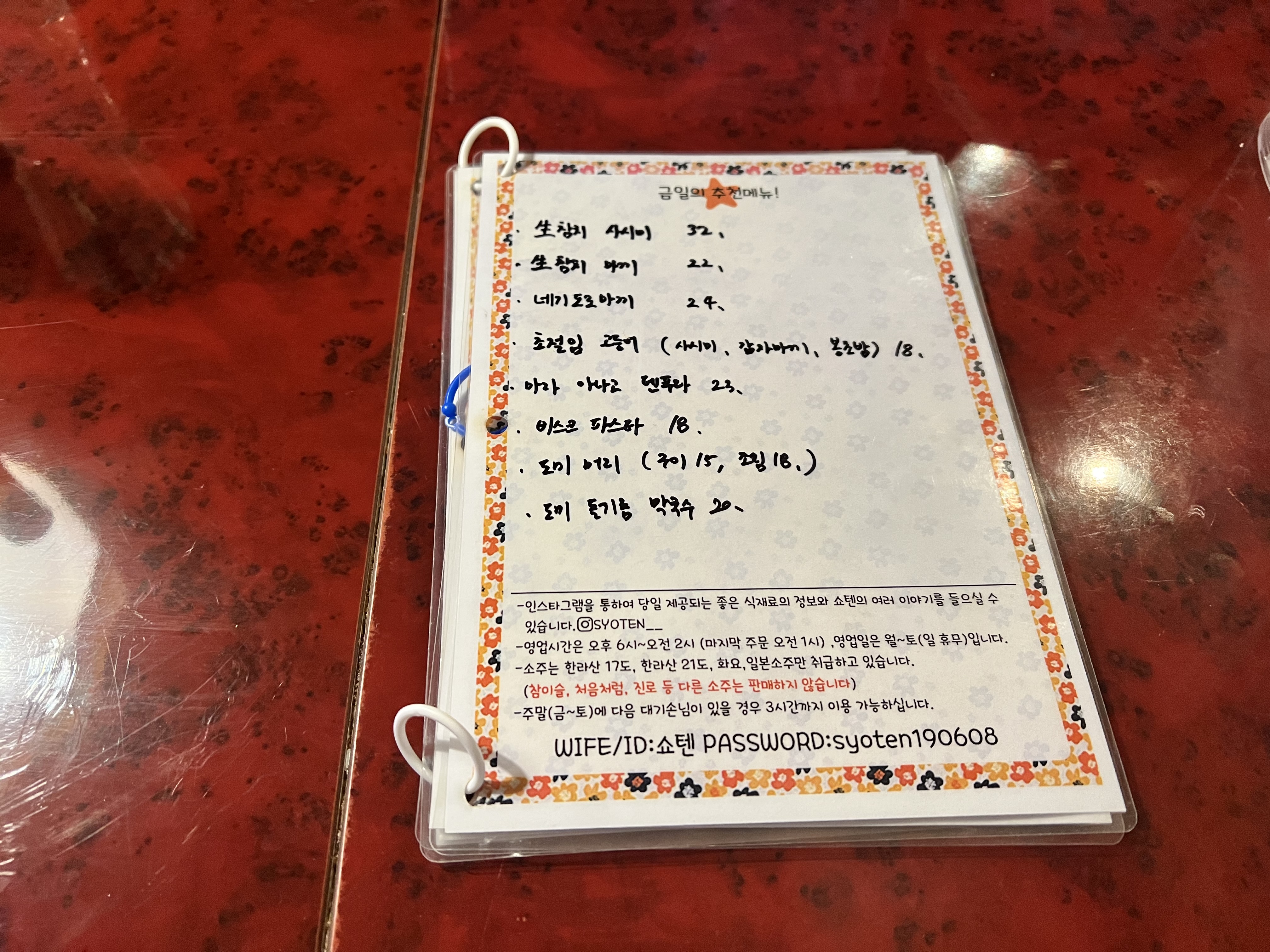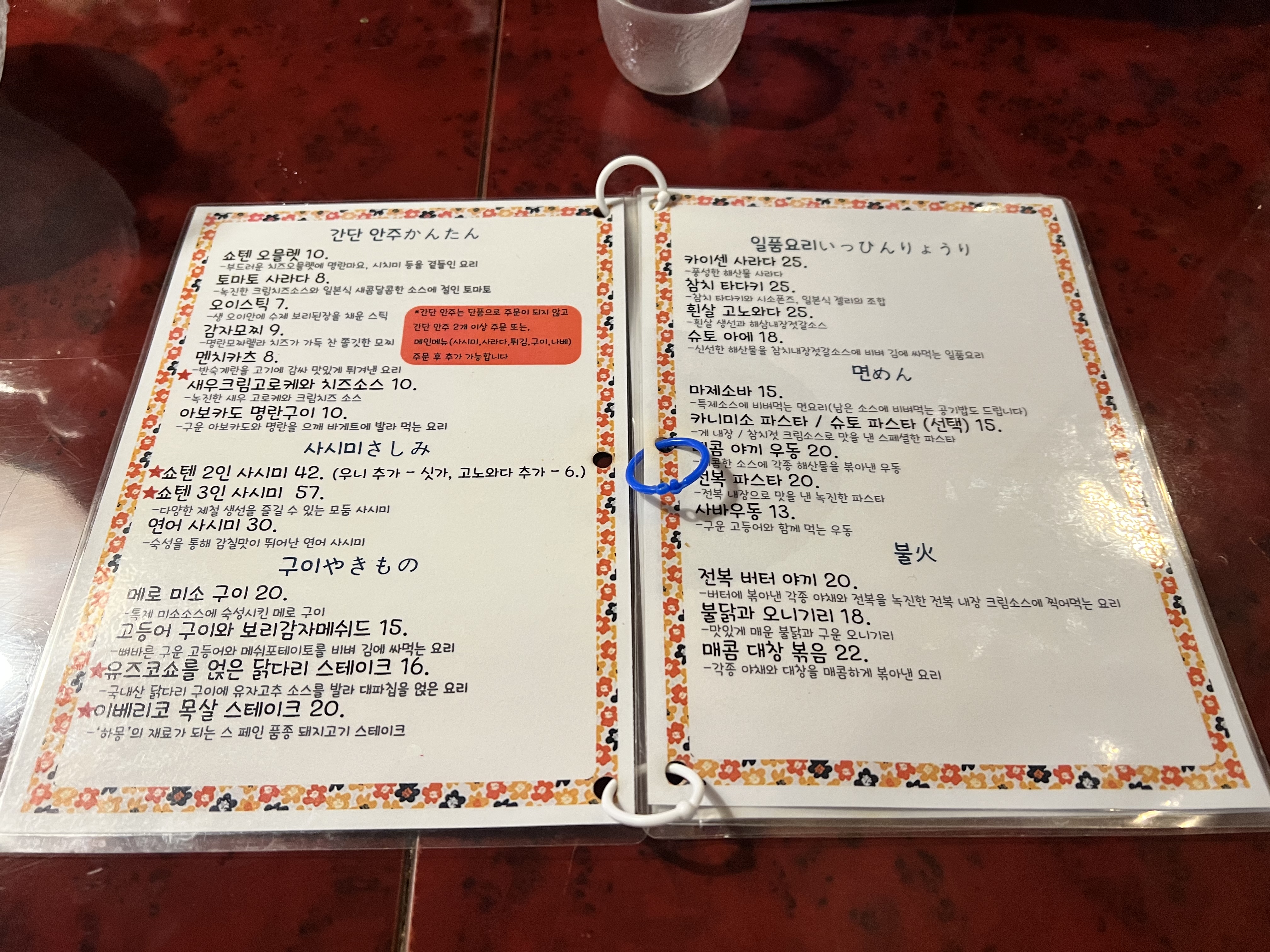 쇼텐 사시미를 먹으려하다가 그날은 왠지 사시미가 당기지 않아서