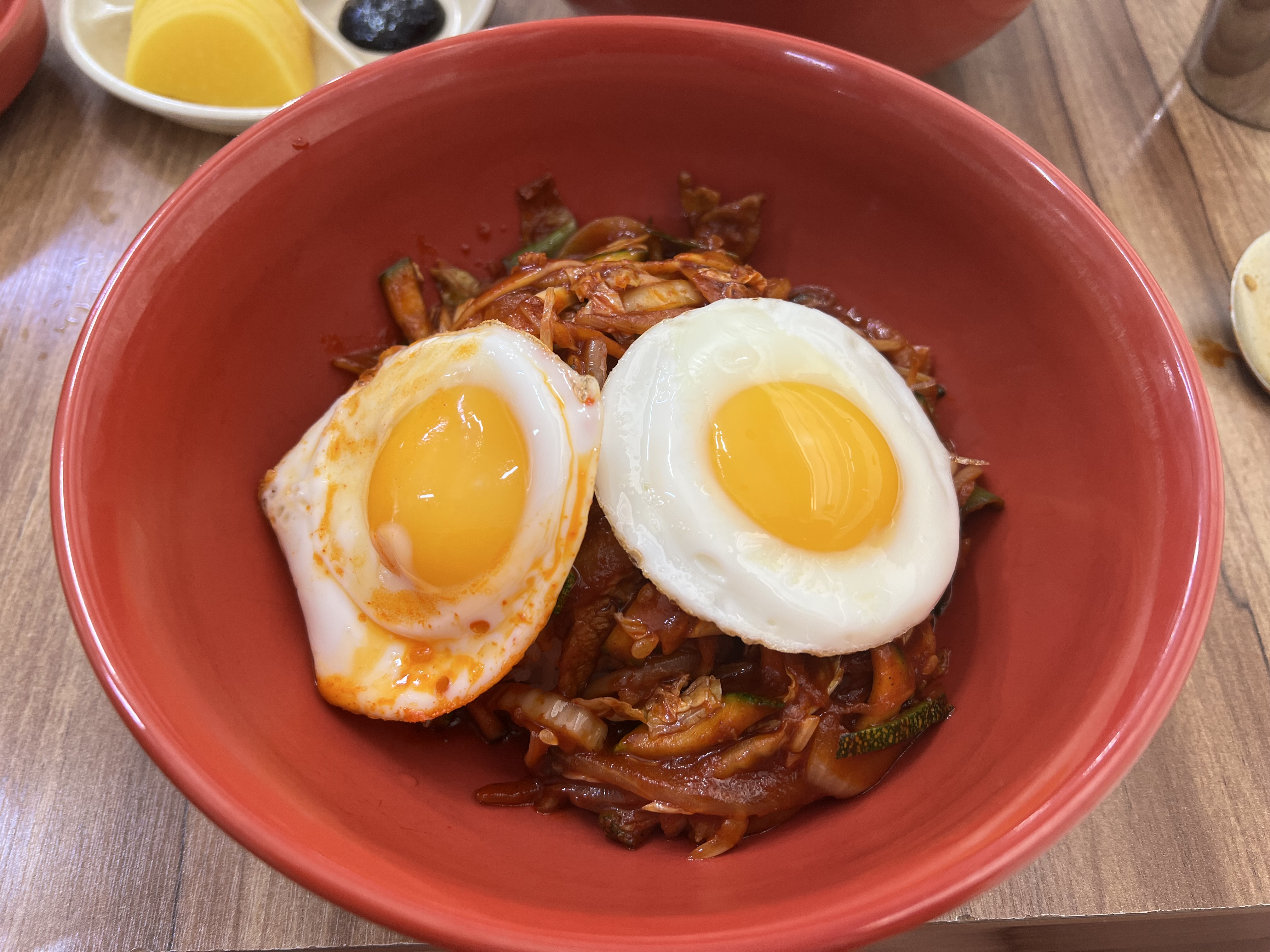 역시 반숙 후라이가 음식의 비주얼을 향상시킵니다.