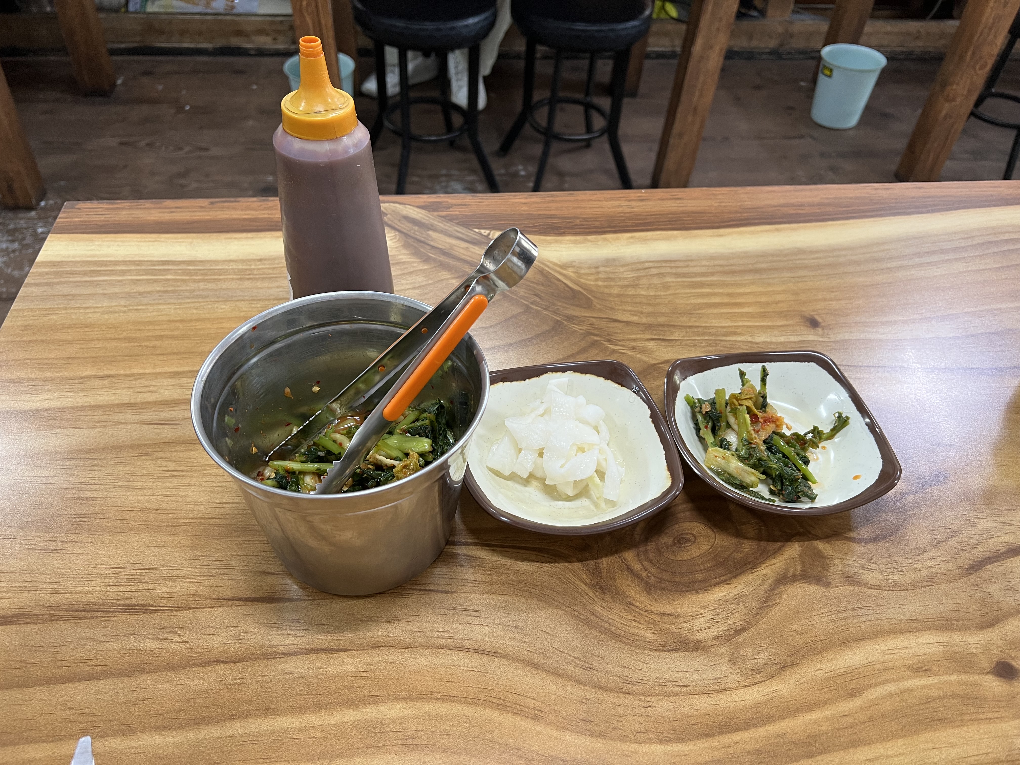 냉면이 나오기 전에 무김치, 열무김치, 다대기를 제공하여 주십니다.
