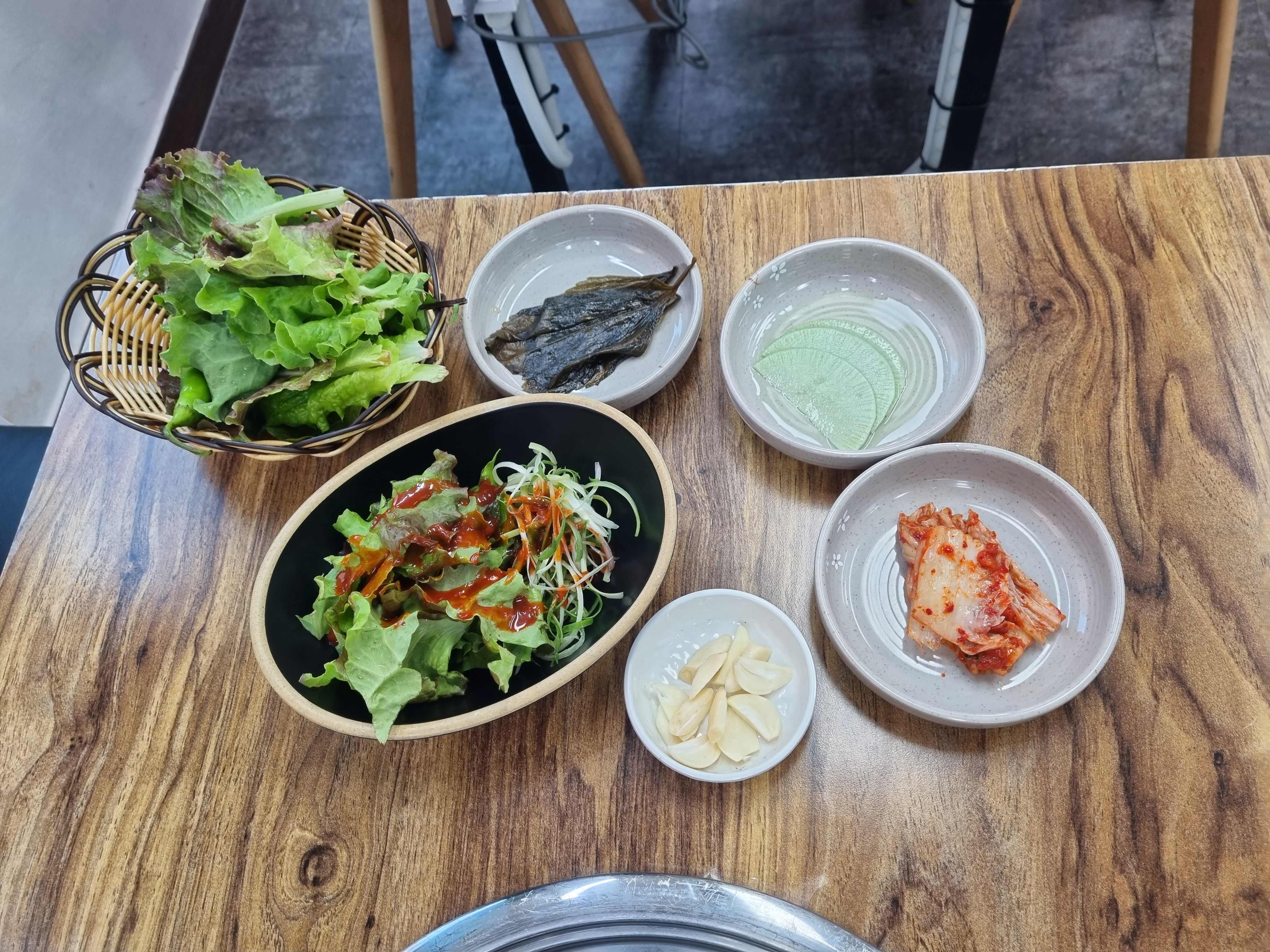 무쌈과 파절이, 김치, 야채 등 기본찬을 계속 리필하였습니다^^