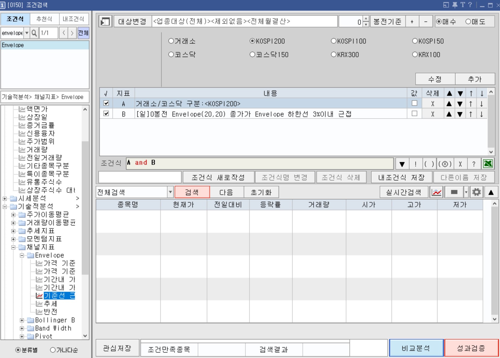 엔벨로프(Envelope) 조건 검색 설정 - 키움증권 영웅문