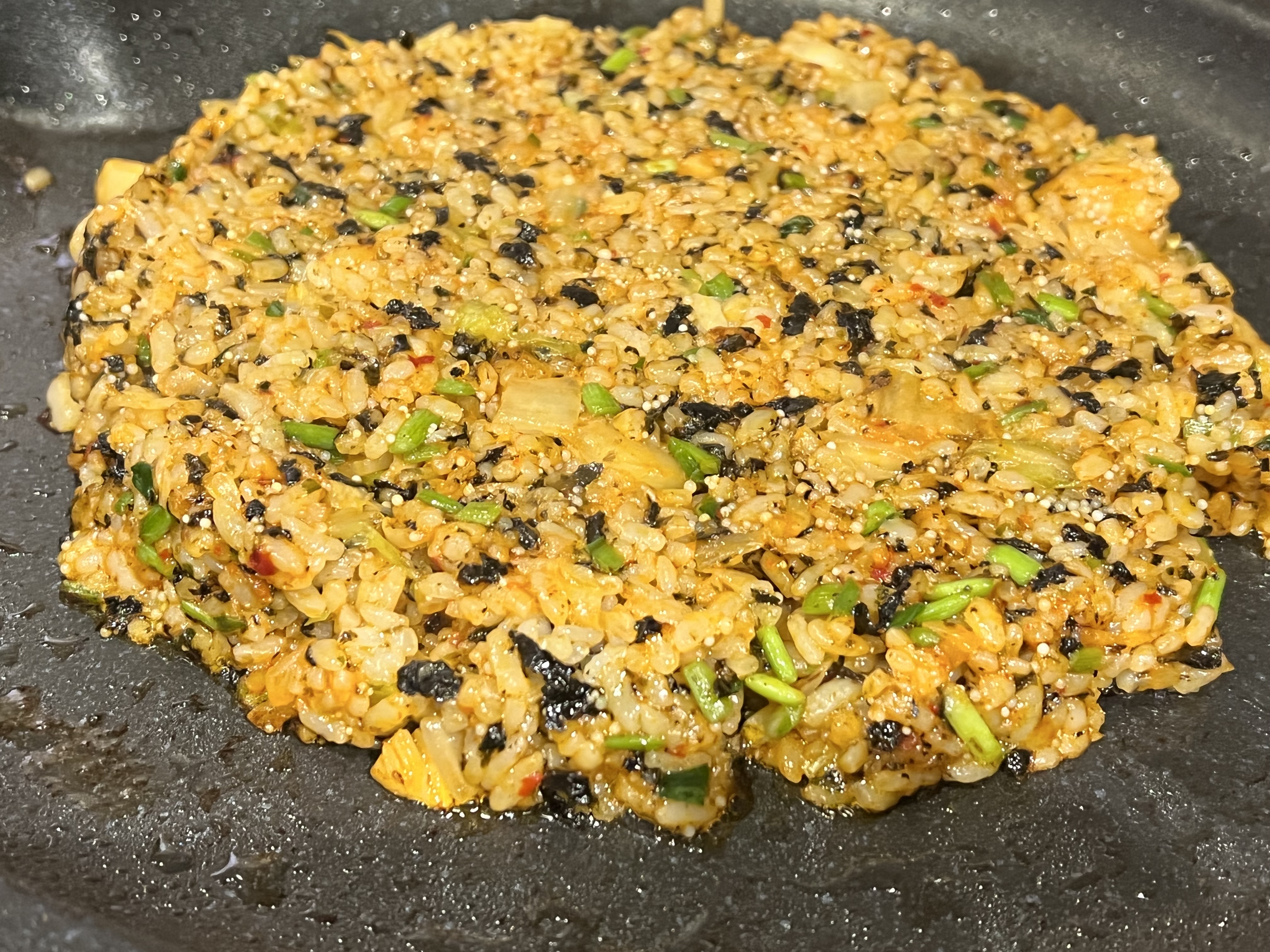 볶음밥에 김치, 김, 각종 채소와 날치알이 올라가 있어 정말 정말 맛있었습니다.