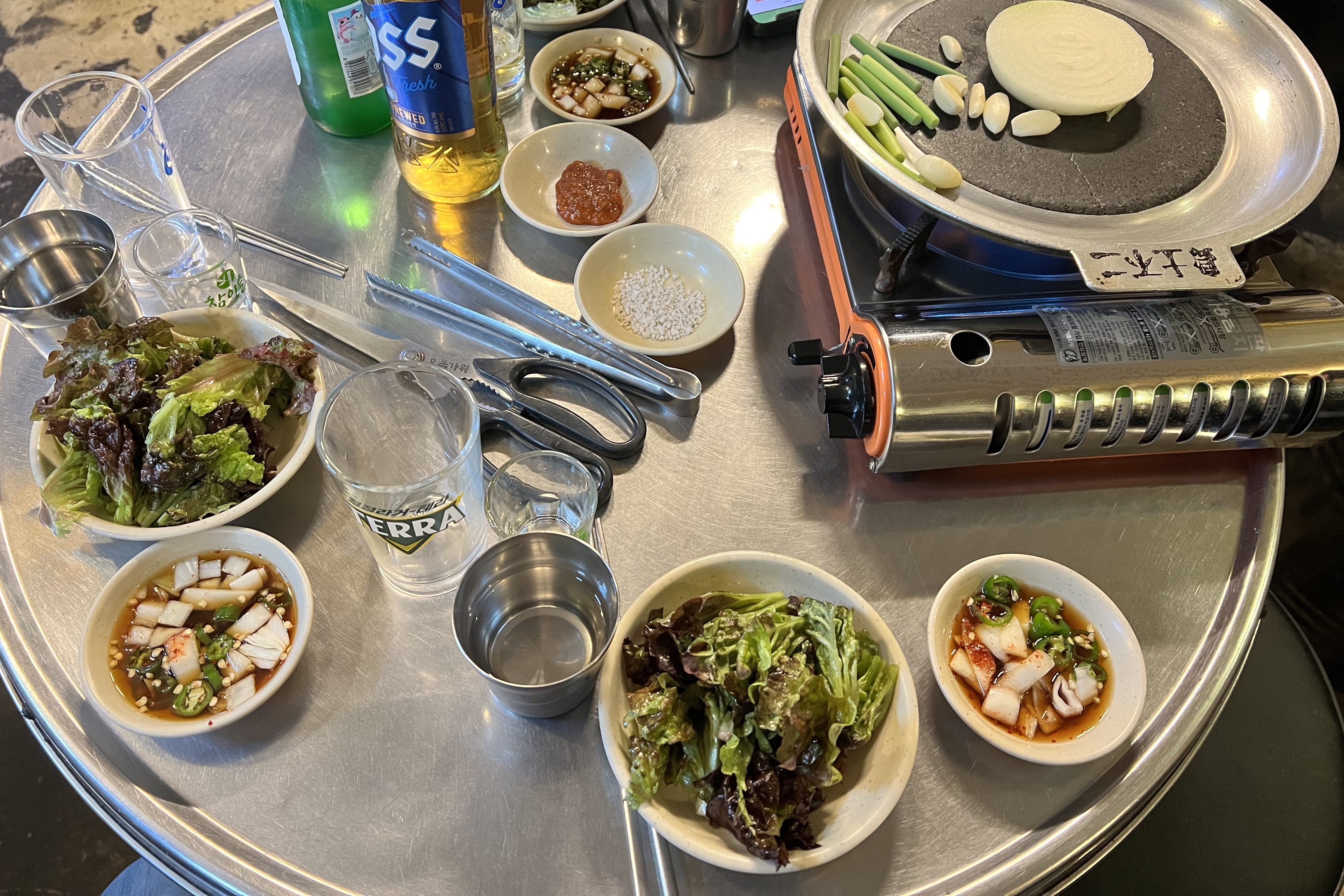 원형 테이블로 되어 있고 주문을 하면 위 사진처럼 기본 세팅이 나옵니다.