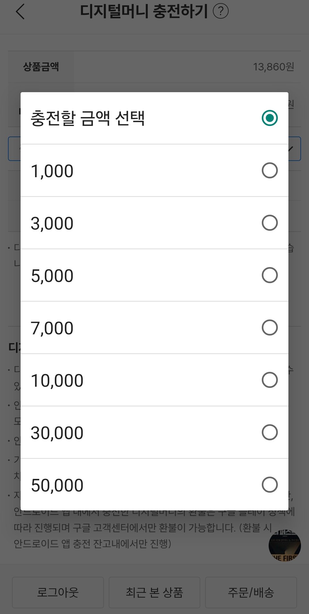 이미 IOS에서 당한 경험이 있으니 일단 최소 금액인 3,000원을 눌러봅니다. 으잉? 이것도 10%가 붙어서 결제할 금액은 3,300원이 되네요. "안드로이드 앱 내에서 충전 시 1.1배의 환율이 적용됩니다"란 문장이 보입니다. 애플에 비해서 0.1배 낮기도 하고 부가가치세에 익숙한 대한민국 국민이기에 결제를 하려다가 문득 궁금하였습니다. 현금처럼 사용하는데 10%의 추가 비용을 내야 하는 걸까? 이런 궁금증이 저를 호구의 길에서 벗어나게 해주었습니다.
