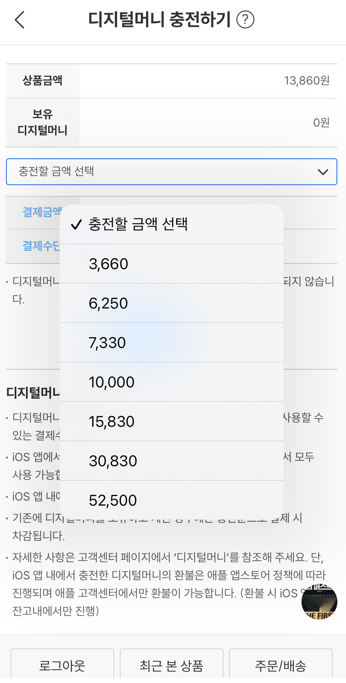 가장 최소 단위인 3,660원을 눌렀더니 실제 결제할 금액은 4,400원? 정말 어이가 없어서 디지털머니 충전 안내를 읽어보는데 "IOS 앱 내에서 충전 시 1.2배의 환율이 적용됩니다"란 문구가 보입니다.