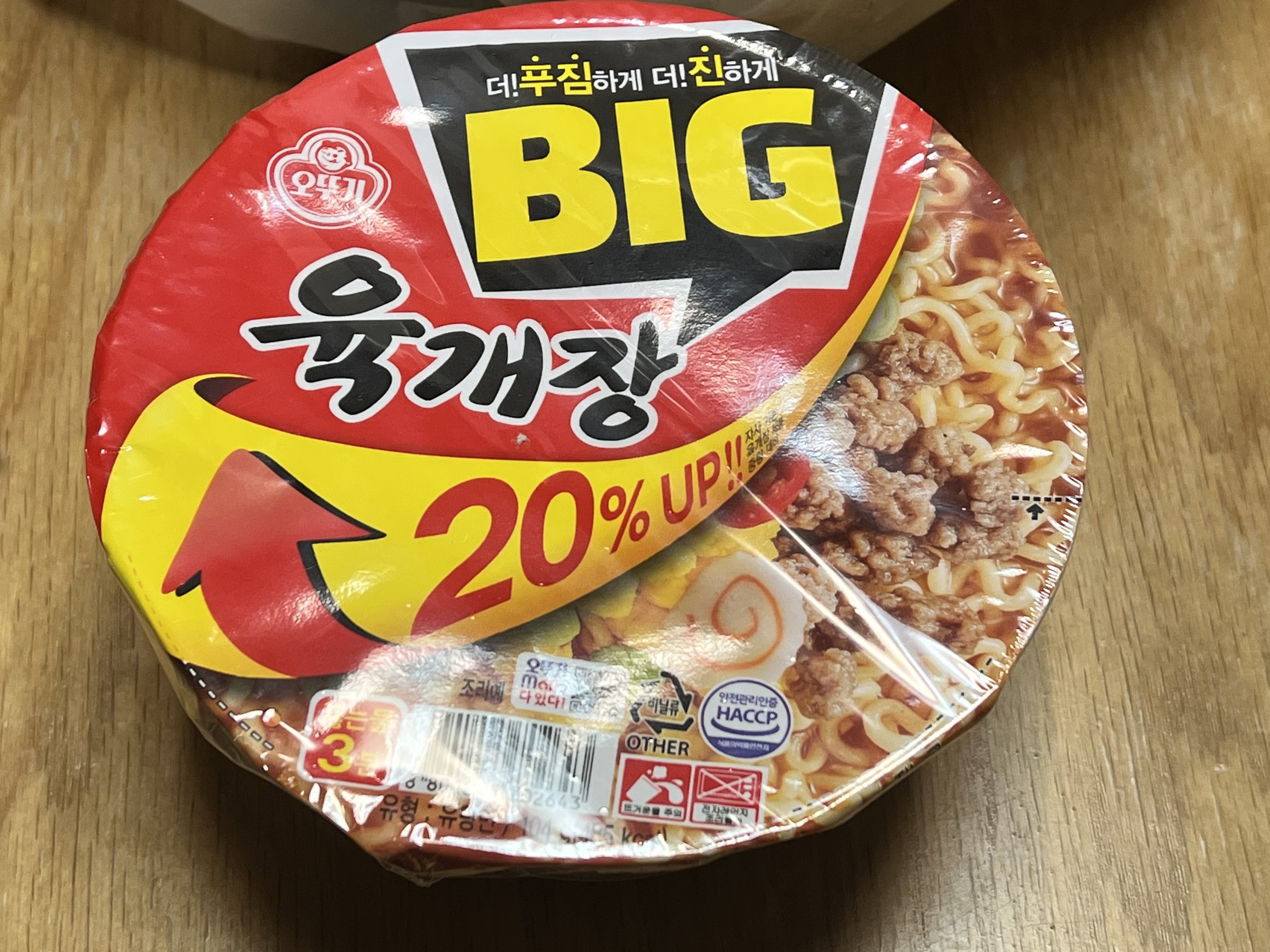 농심 육개장 컵라면 대비 오뚜기 육개장 컵라면이 더 매웠습니다.