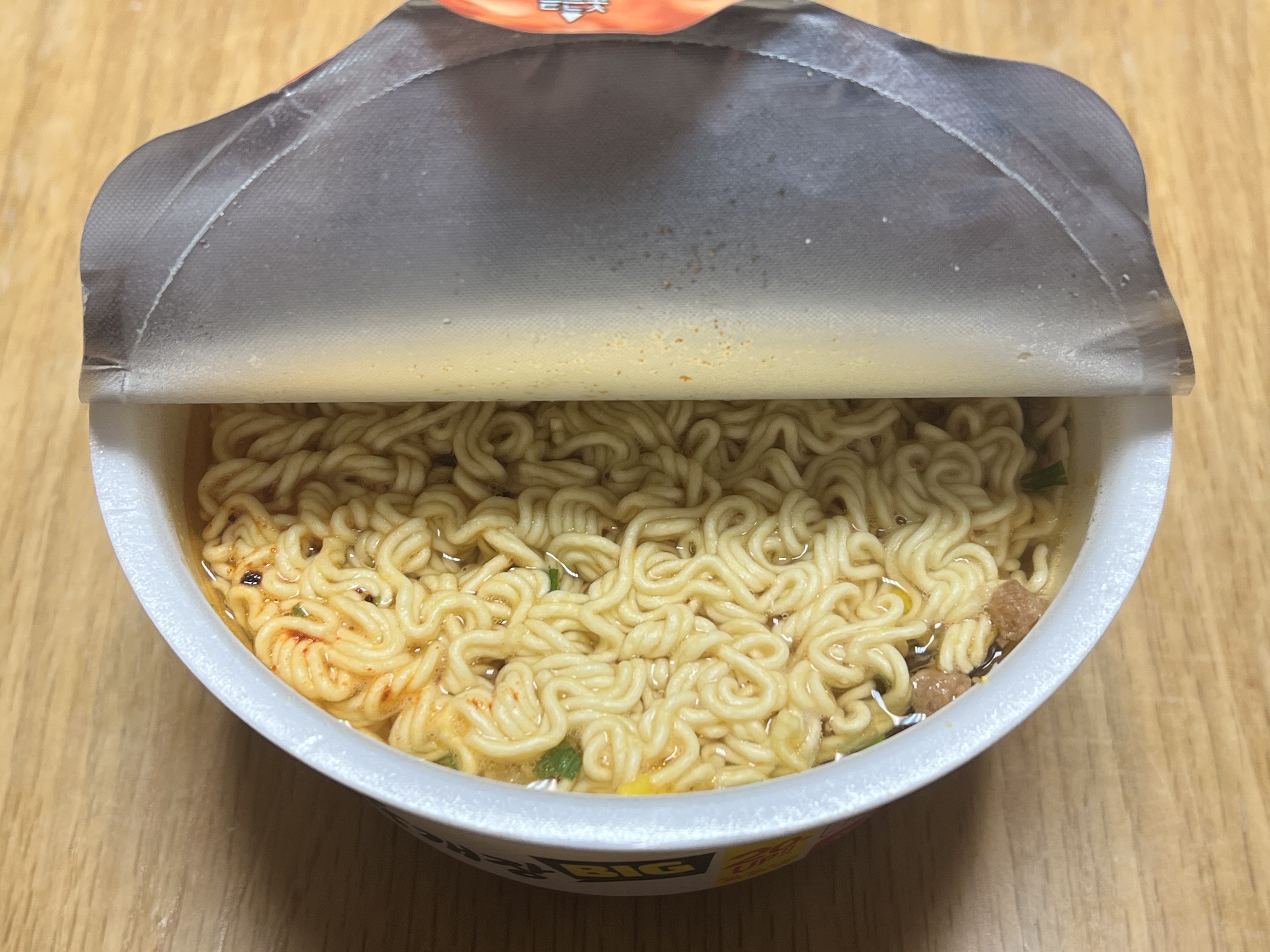 개인에 따라 취향이 다르겠지만 육개장 컵라면은 물을 기준선보다 좀 적게 부어주는 게 맛있어서 저는 조금 적게 부어줬습니다.