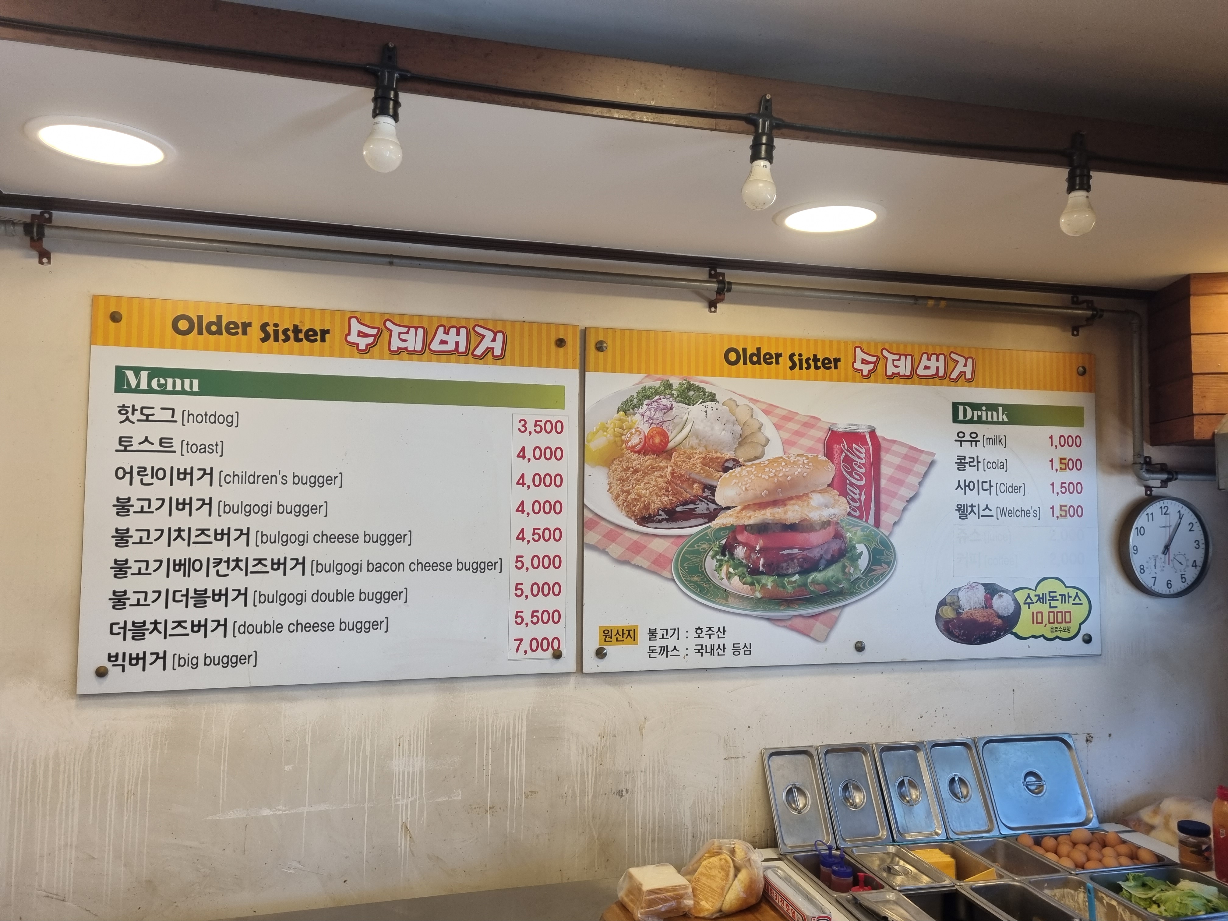 친절한 사장님께 주문할 버거와 음료를 말씀하신 후 음식을 받을때 계산을 하시면 됩니다.