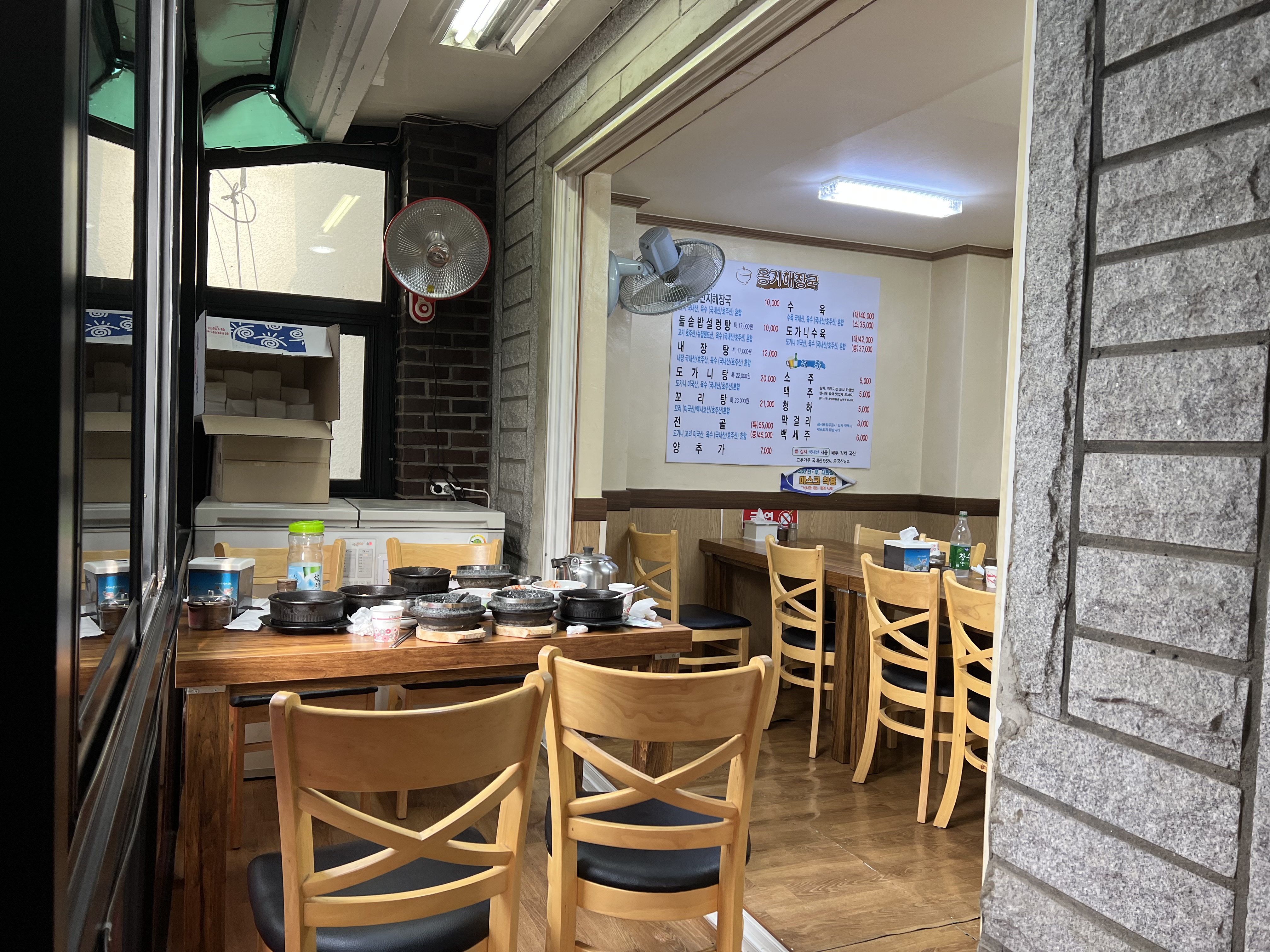 다른 테이블은 김치, 깍두기가 옹기에 담겨 있어서 덜어먹는 시스템이었습니다.