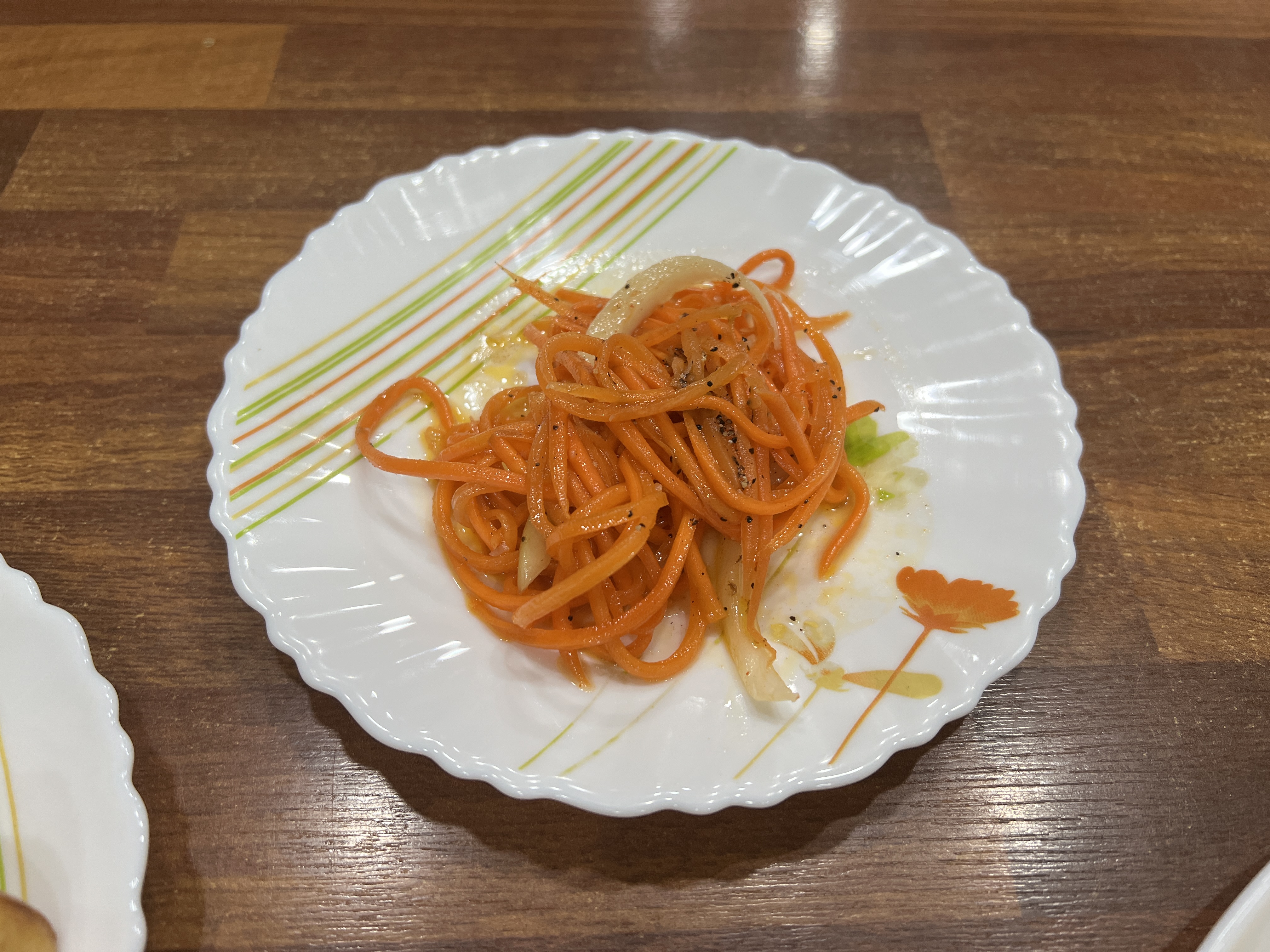 당근 샐로드란 메뉴라 메뉴판에 있는 당근김치 맛이 궁금했는데 다행히도 기본 반찬에 같이 나오더라고요.