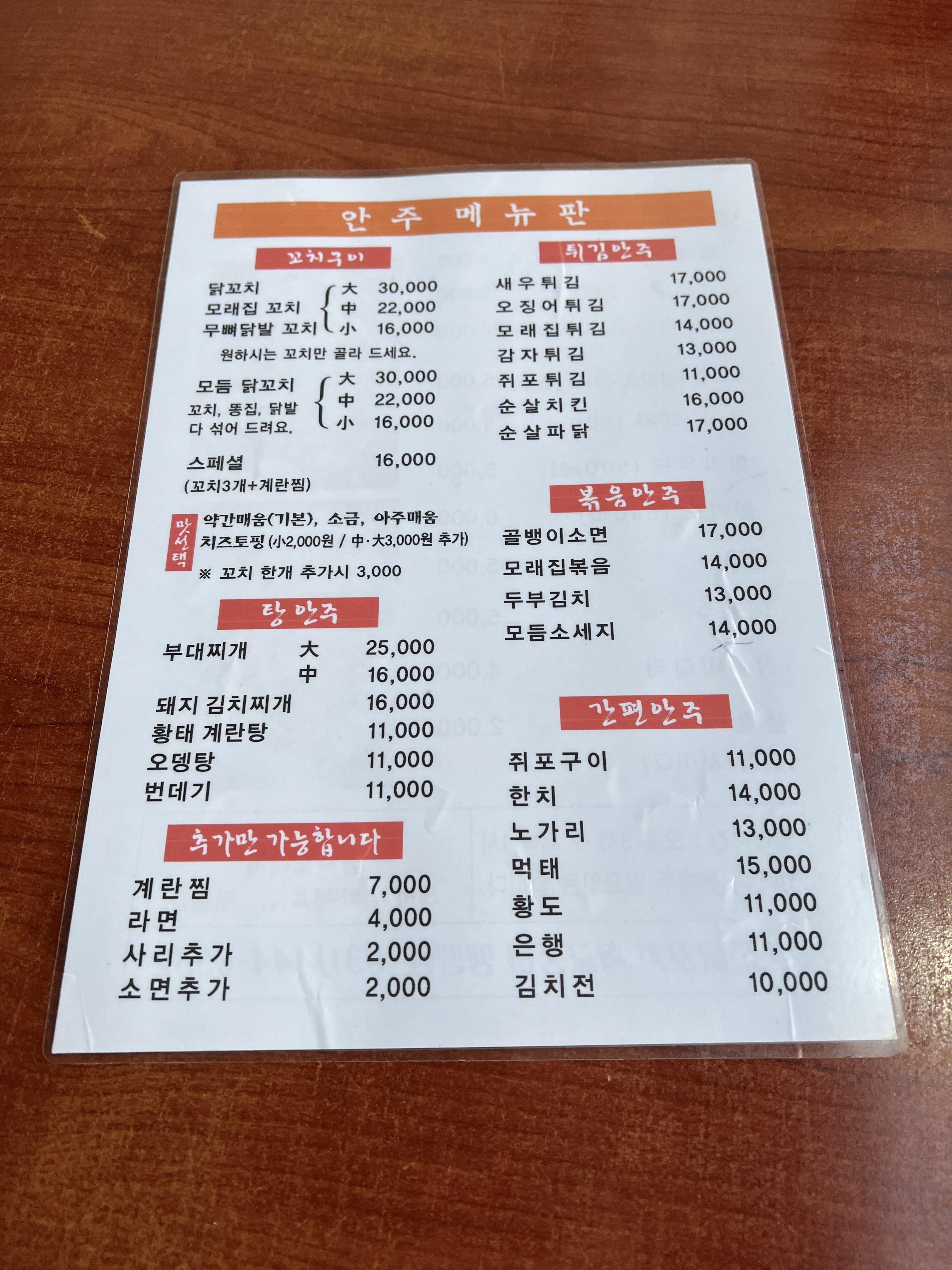그 외 안주류 메뉴도 가득합니다.