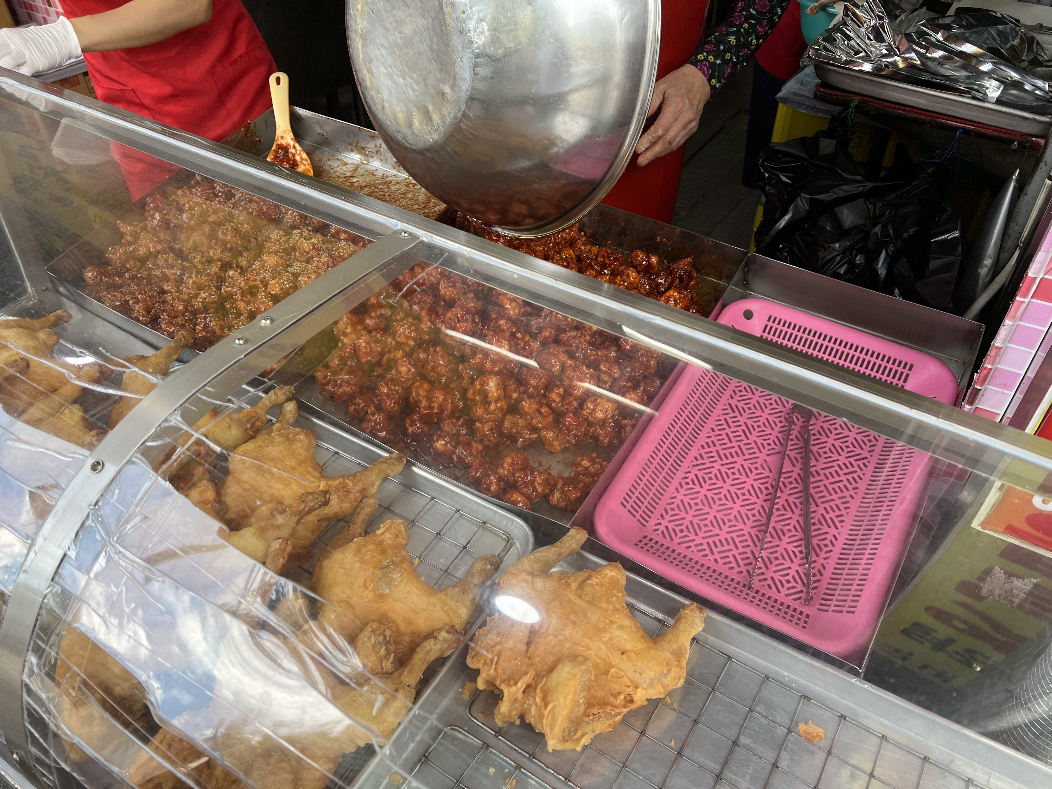 안에서 남자 사장님께서 계속 닭을 튀기고 여 사장님이 양념을 버무리는데 대기줄이 많을 경우에는 주문해놓고 몇 분 후에 와서 가져가라고 알려주십니다.