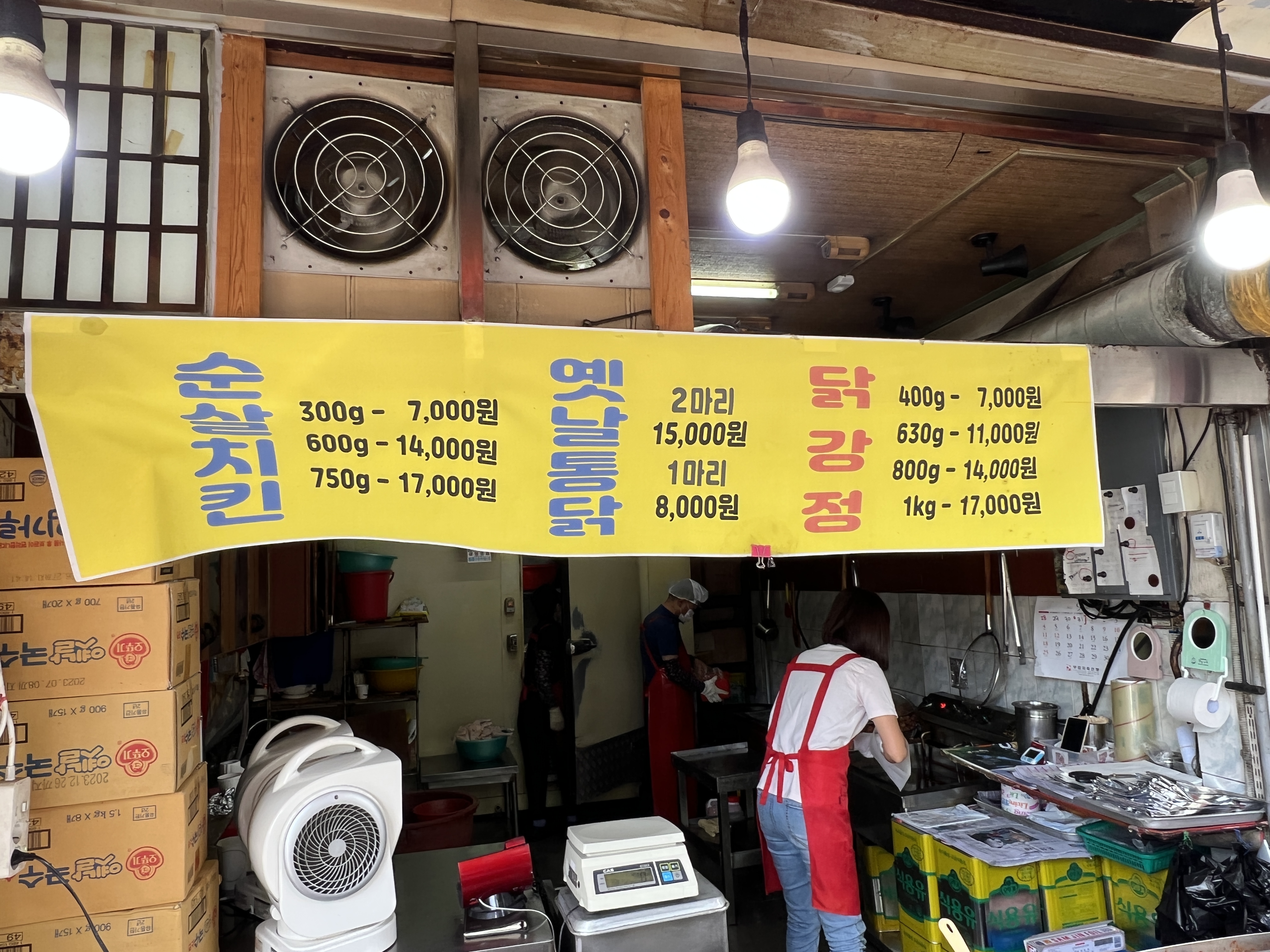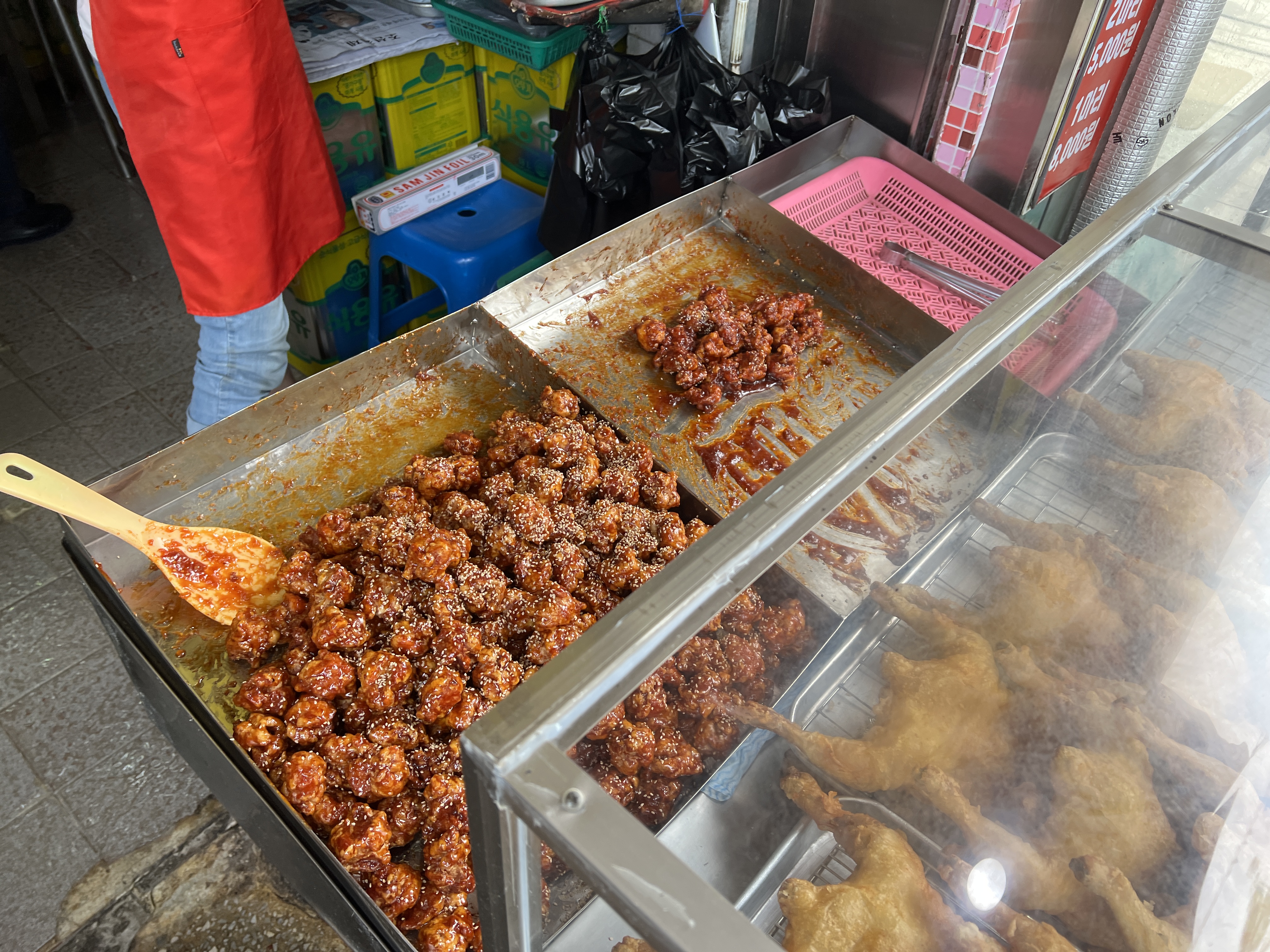 안에서 남자 사장님께서 계속 닭을 튀기고 여 사장님이 양념을 버무리는데 대기줄이 많을 경우에는 주문해놓고 몇 분 후에 와서 가져가라고 알려주십니다.