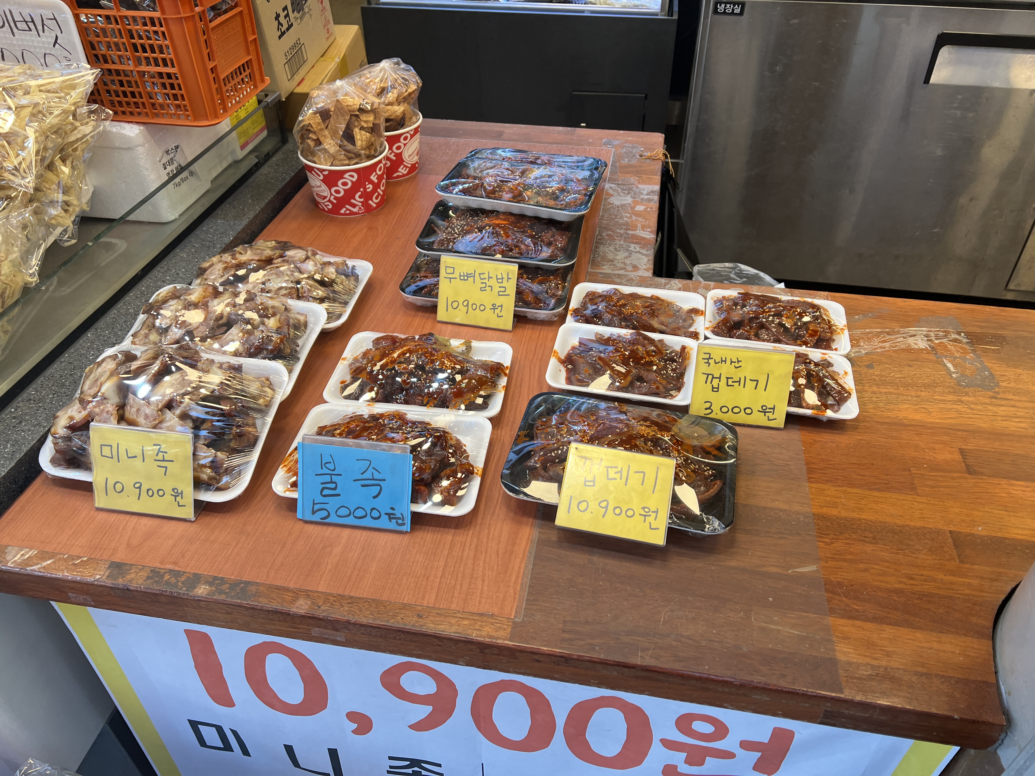 포장을 해주시는 중에 주변을 둘러보니 미니족, 불족, 껍데기, 닭발등이 보였습니다. 맛있어 보이네요.