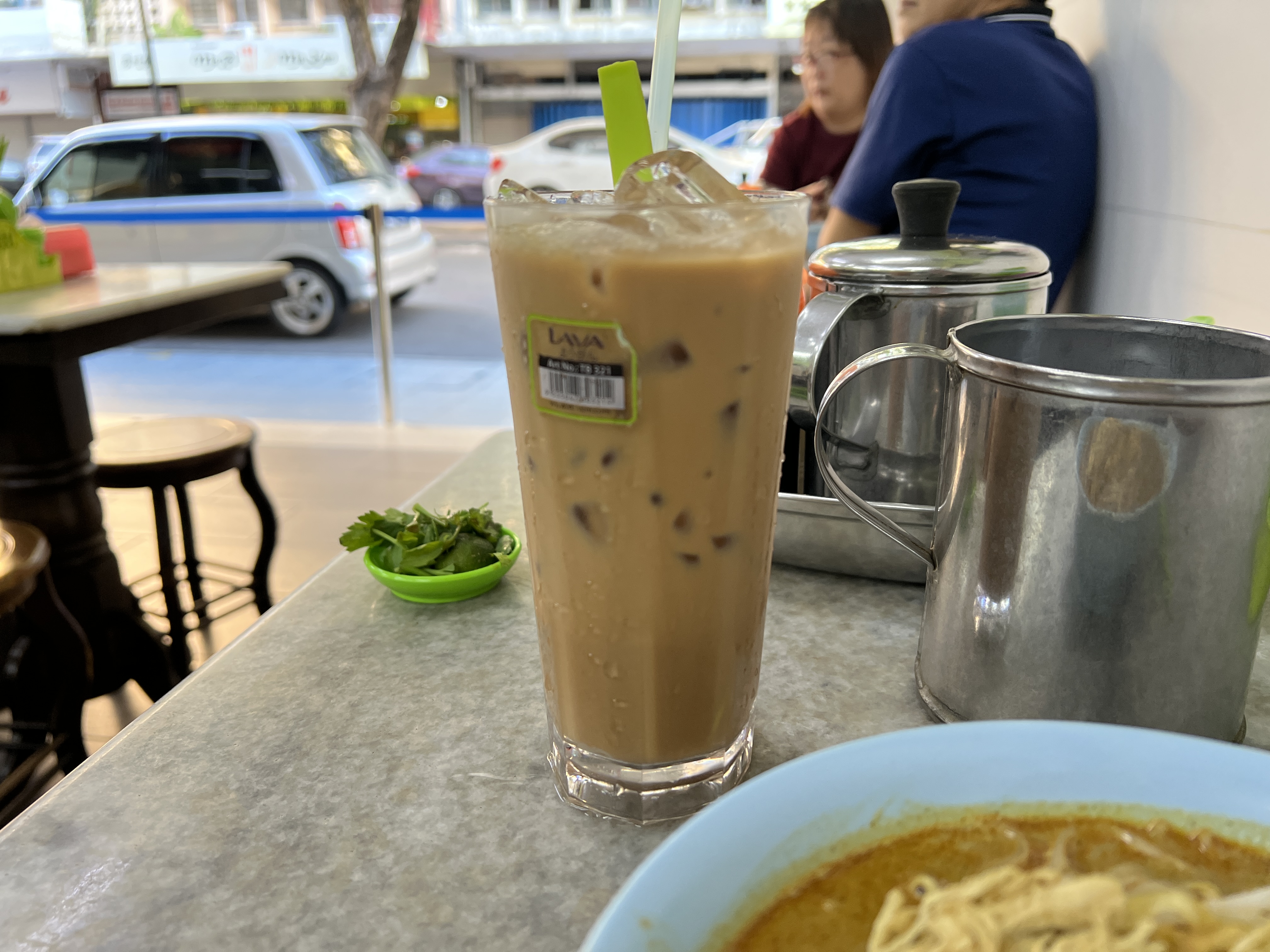 다음은 밀크티입니다. 저는 시원한 걸로 먹었는데 가격은 3링깃입니다. 우리 돈 900원이죠? 걷어낸 라임과 고수도 보이네요 ㅎㅎ 사람들이 락사와 밀크티는 꼭 먹어야 한다고 하던데 왜 그러는지 느껴졌습니다. 달기도 적당하고 시원하고 양도 많고 코타키나발루에서 먹었던 밀크티 중에 가장 맛있었습니다. 락사는 가장 저렴한 기본 락사 메뉴판에 A1 드시면 될 것 같고 밀크티도 꼭 드셔보시기 바랍니다.