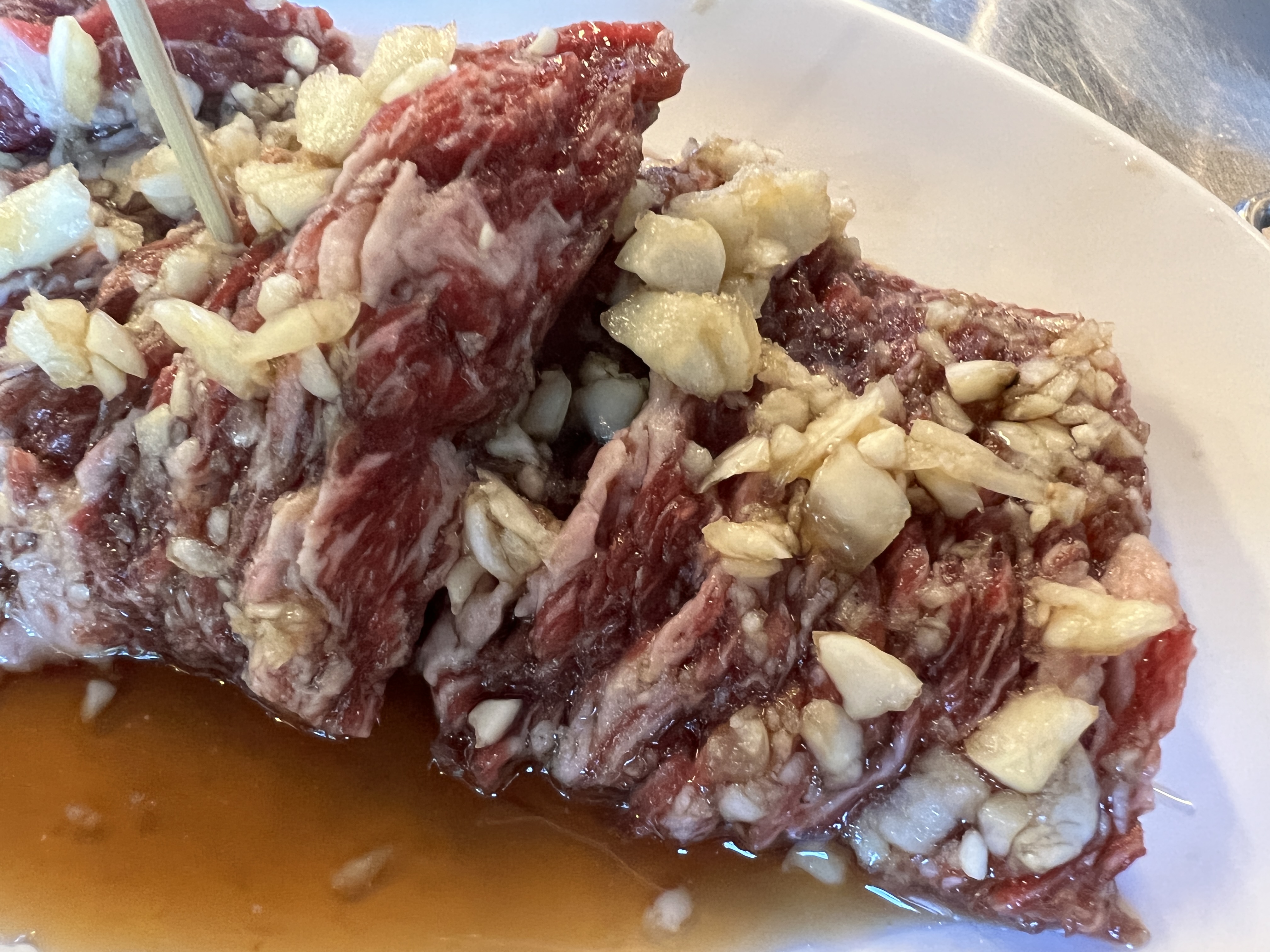 안창살도 깃발이 꽂혀 마늘이 묻혀 제공됩니다.