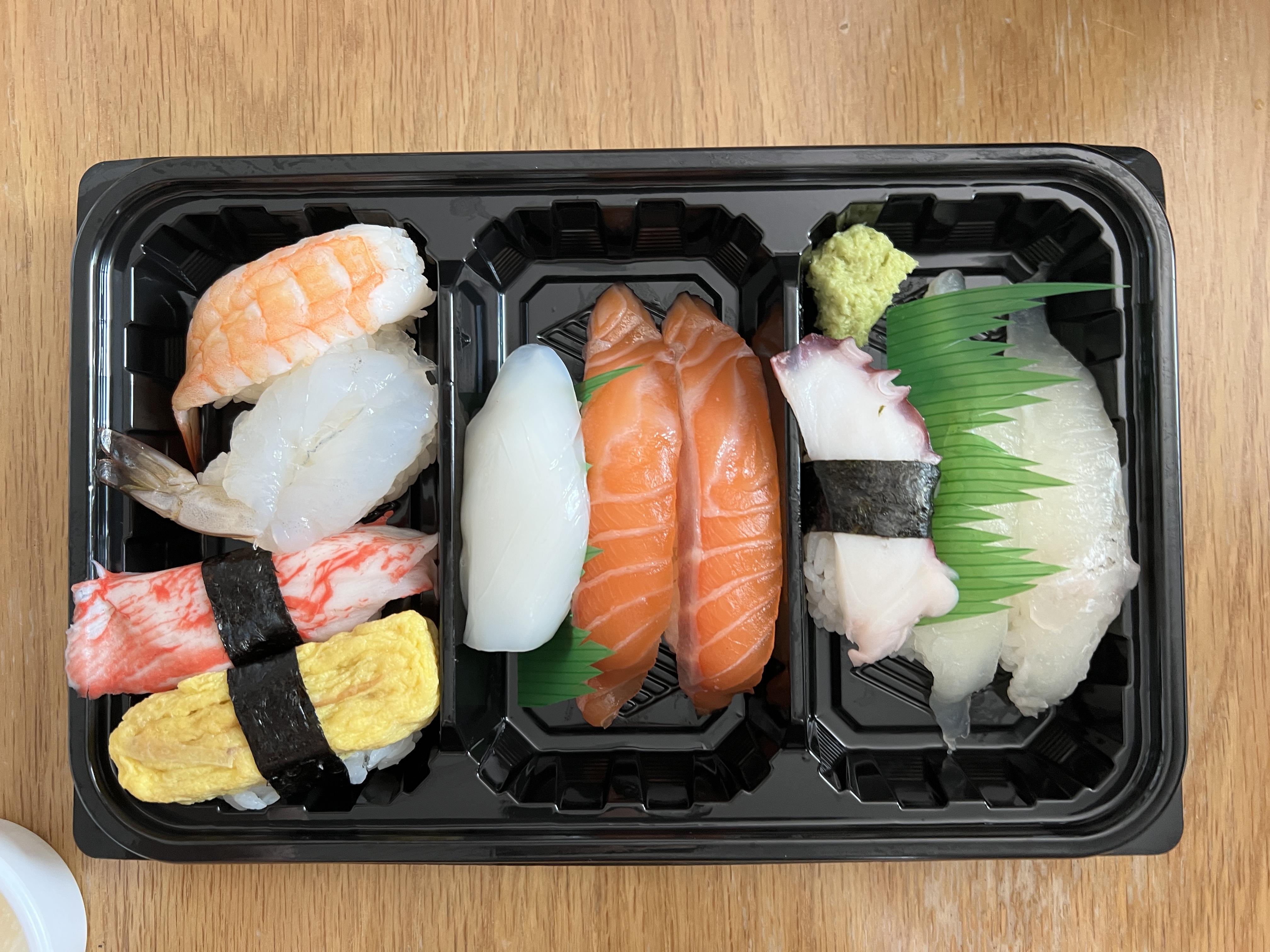 대망의 모듬초밥!! 정확히 10pc를 맞춰서 제공하여 주었습니다. 기본적인 초밥들이라 사진만 봐도 어떤 메뉴인 줄 알 것 같습니다. 다양한 구성은 좋았는데 생선이 촉촉하지 않고 살짝 말라있는 느낌이 있어서 적정 수준의 맛은 내어주었지만 자신 있게 추천할 만한 메뉴는 아니었습니다. 그럼에도 메뉴평과 주문이 많다는 것은 평소엔 잘 나오다가 이번만 잘못 나올 수 있는 것이 아닐까라는 생각도 들었습니다. 다음엔 술과 함께 안주를 한번 먹어봐야겠습니다.