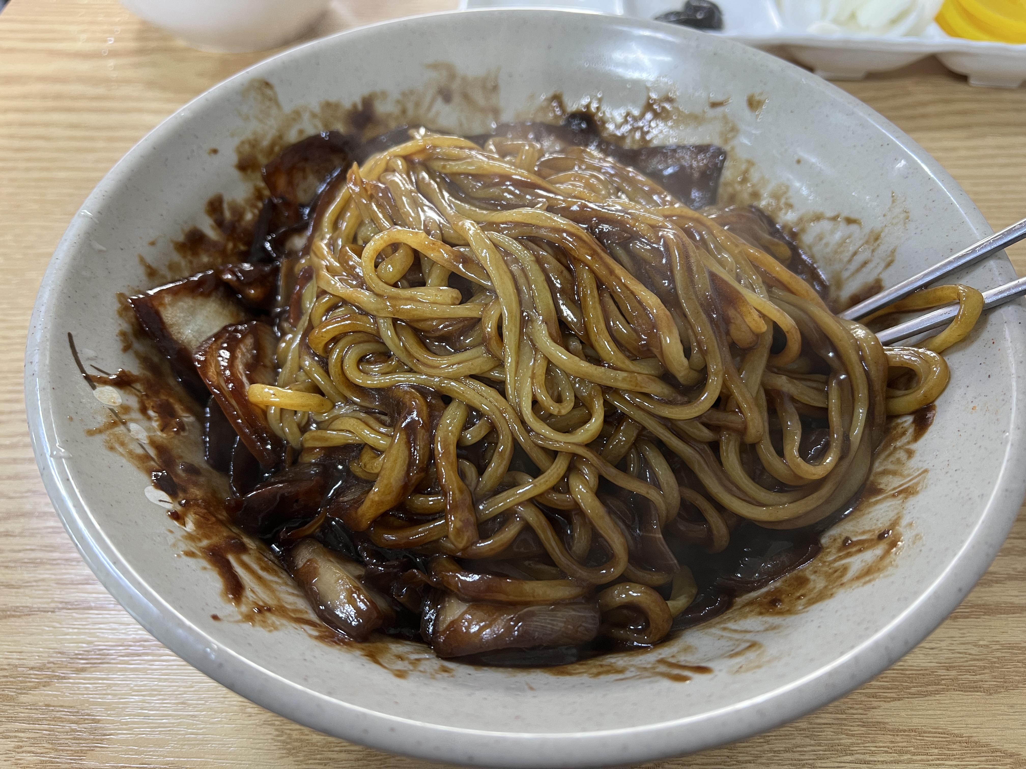 짜장면 비빌 때 만족했던 느낌 그대로 짜장은 맛있었습니다. 개인적으로 짜장에 질긴 고기가 들어가는 걸 정말 싫어하는데 장가계의 짜장면에 고기는 살코기가 정말 부드럽게 씹혔습니다. 역시 인기 많은 곳은 맛이 있다는 것을 다시 한번 느꼈습니다. 다른 테이블 손님은 짬뽕을 먹는데 정말 맛있게 드시더라고요 짬뽕도 맛있을 것 같습니다. 안양 사시는 분들은 장가계에서 배달 한 번 주문해보셔도 좋을 것 같습니다. 물론 가까운 곳에 계시면 매장도 방문해 보세요.