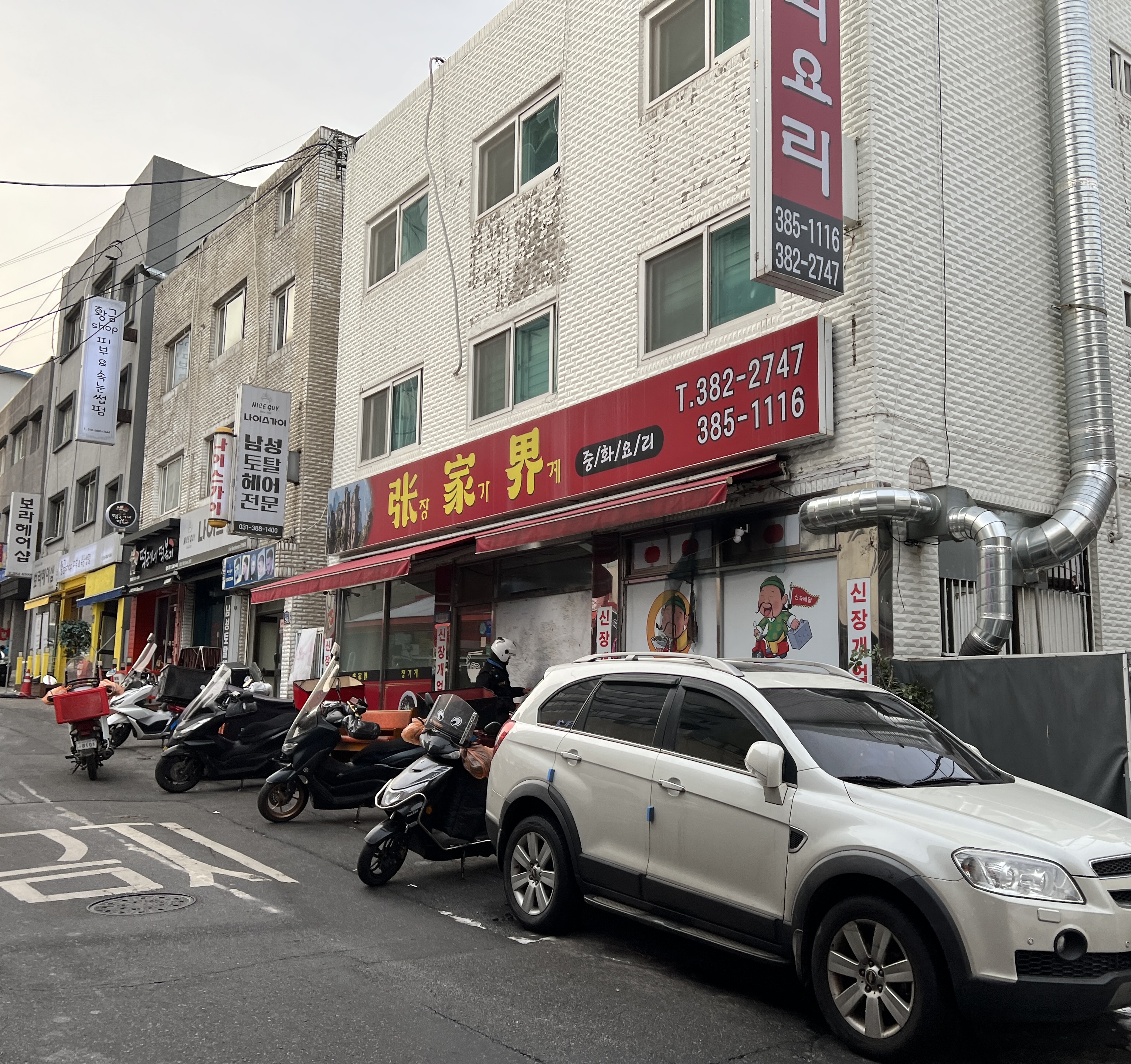 외관은 일반적인 중화요리집 외관입니다. 이곳은 배달원을 두고 배달을 하는지 배달 오토바이가 가게 앞에 많고 배달원들이 왔다 갔다 하는 모습이 보입니다. 요즘은 흔히 볼 수 없는 광경이라 새로웠습니다.