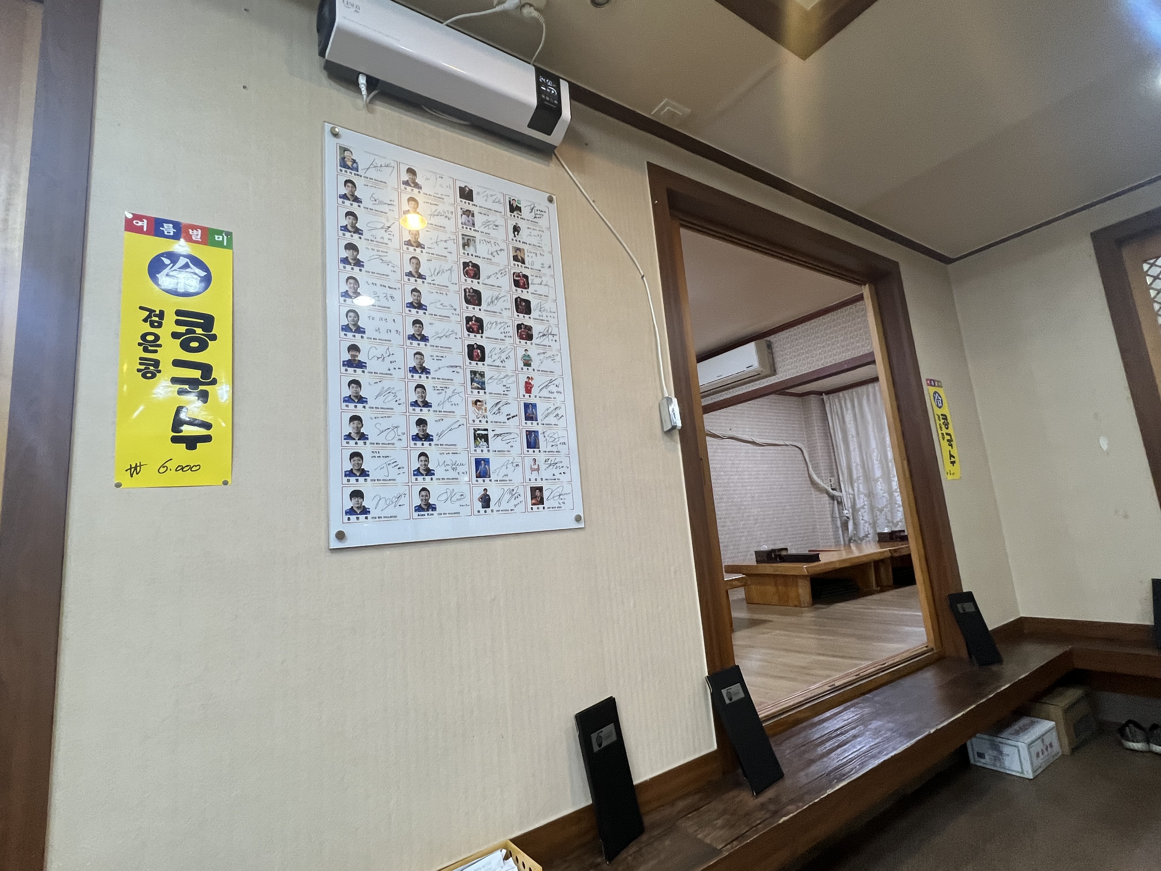 안양 종합운동장 건너편이라 아이스하키 농구 등 선수들의 사진과 싸인이 벽 한편을 채우고 있습니다.