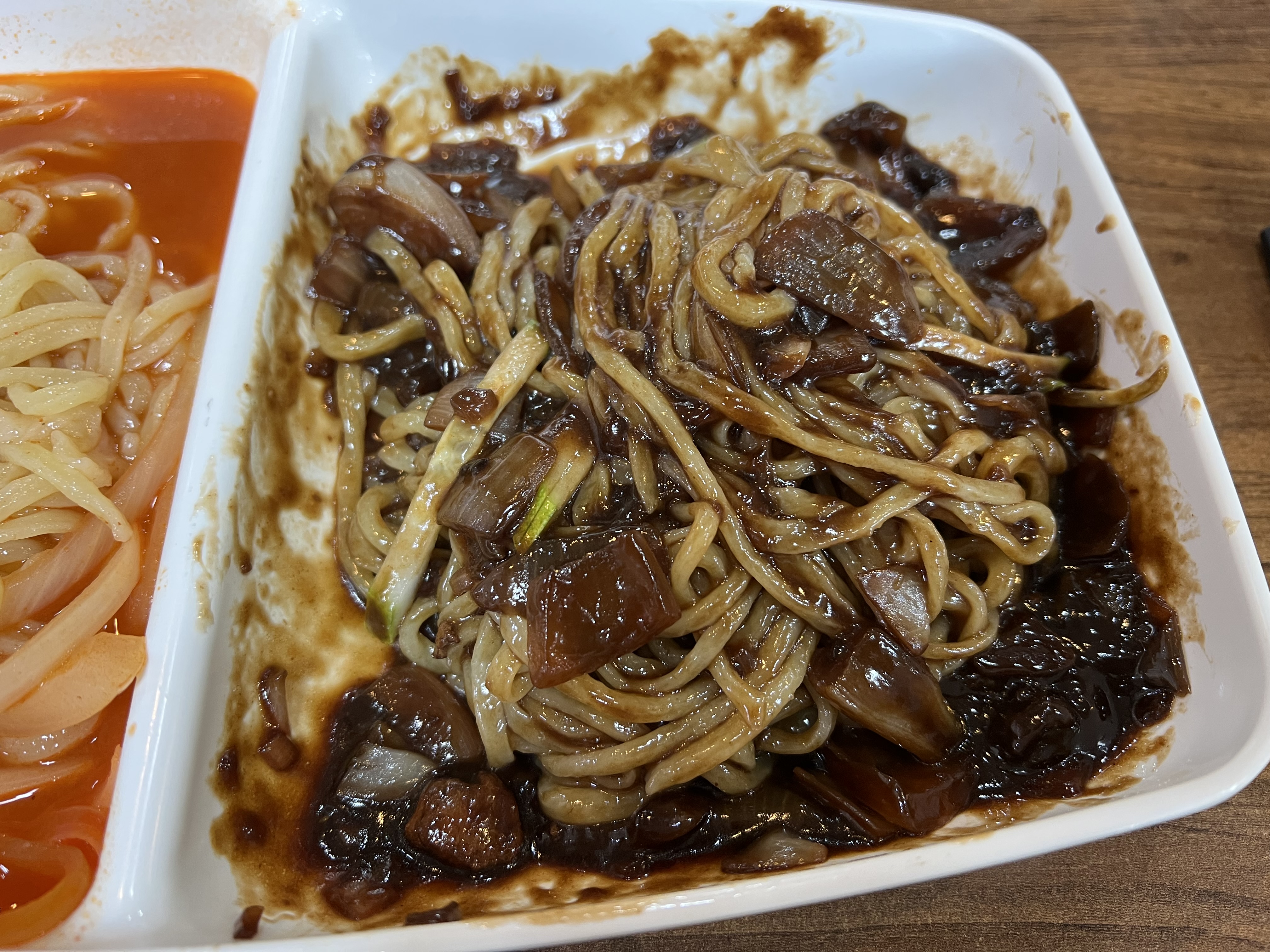 짬짜면 용기가 다른 곳과 다르게 독특합니다.