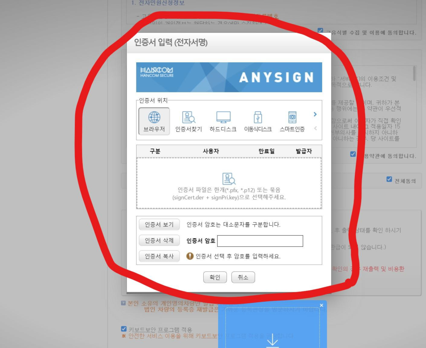 (동의 내용에 필수 사항만 있으니 전체 동의하시면 되며 공동인증서가 필요하므로 준비하시면 됩니다.)