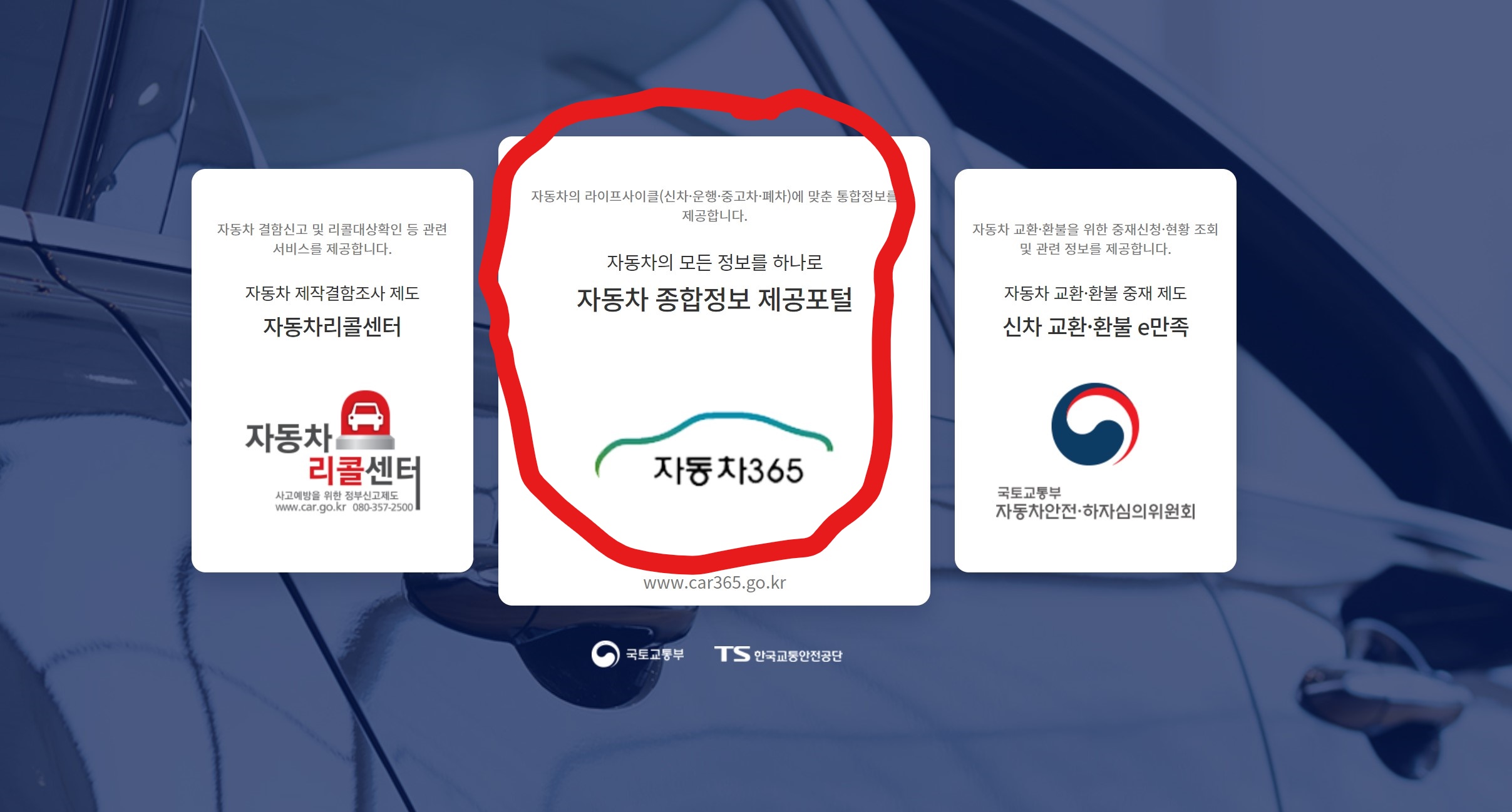1. 인터넷 검색창에 "자동차민원대국민포털"을 검색 또는 https://www.car365.go.kr 로 접속합니다.