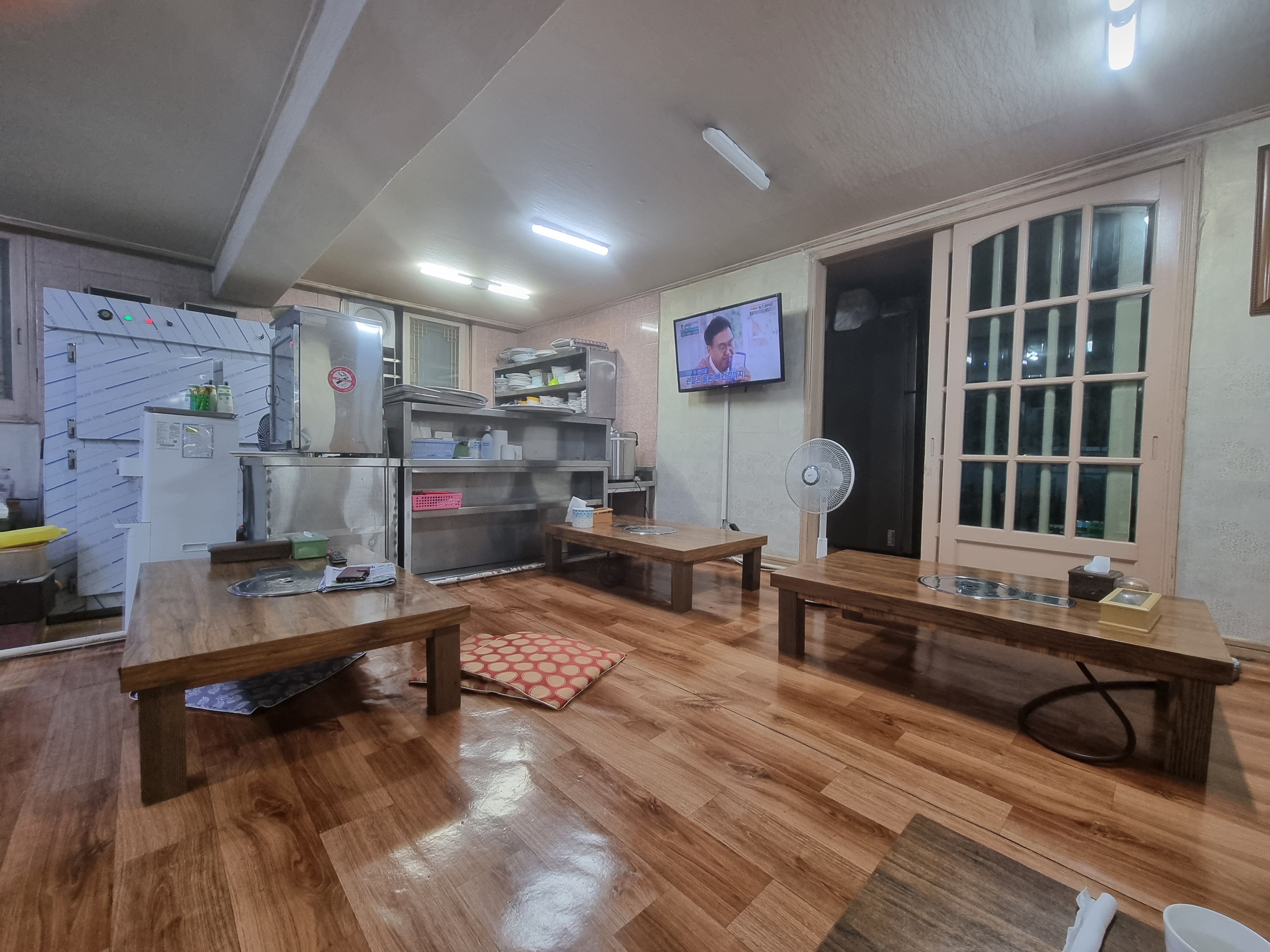 저희 일행은 온돌 좌식 자리에 자리를 잡았습니다.