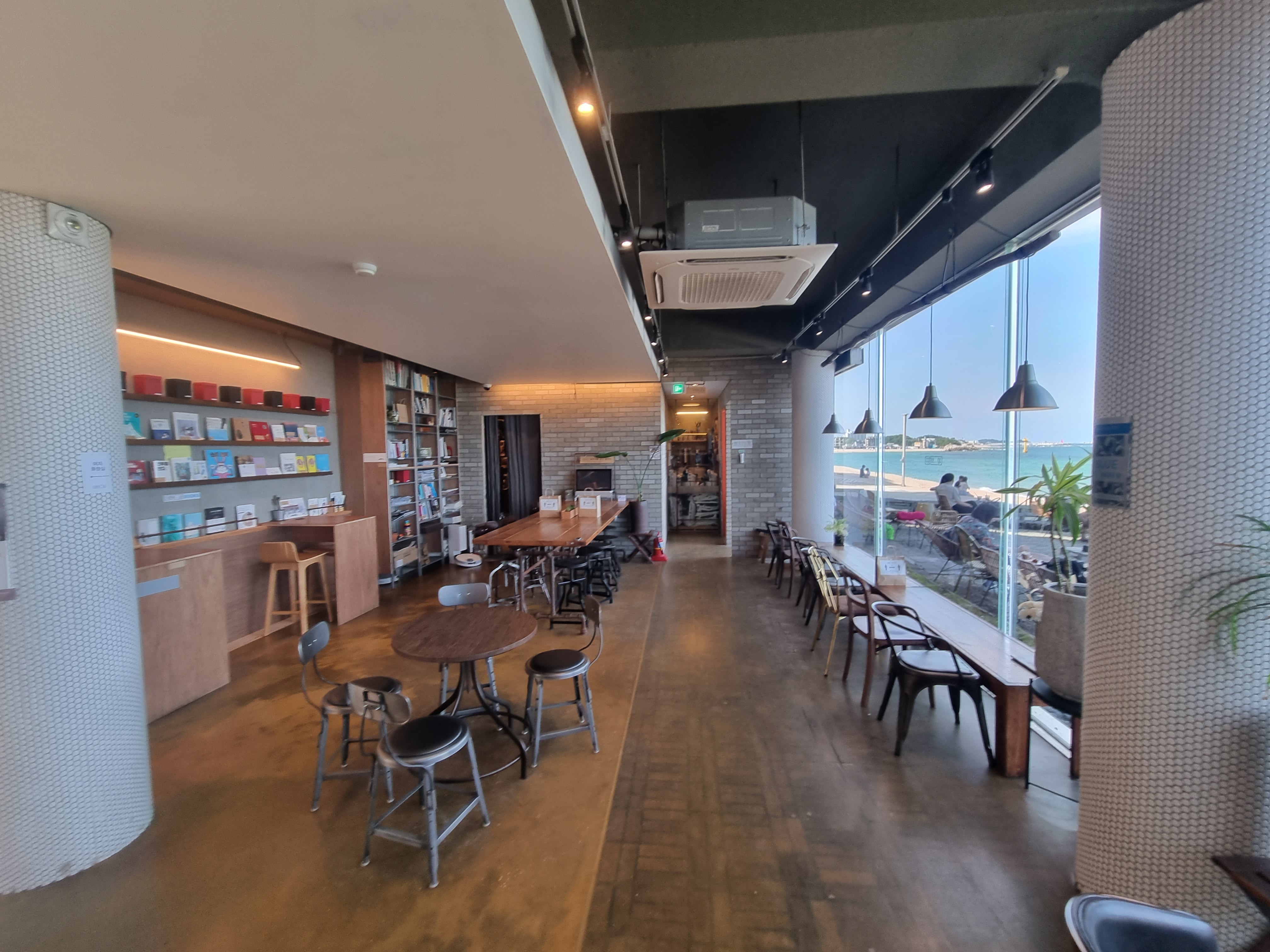 카페에서 가장 멋진 뷰는 모래사장 위에 있는 야외 자리였지만 내부도 너무나 자리가 좋았습니다.