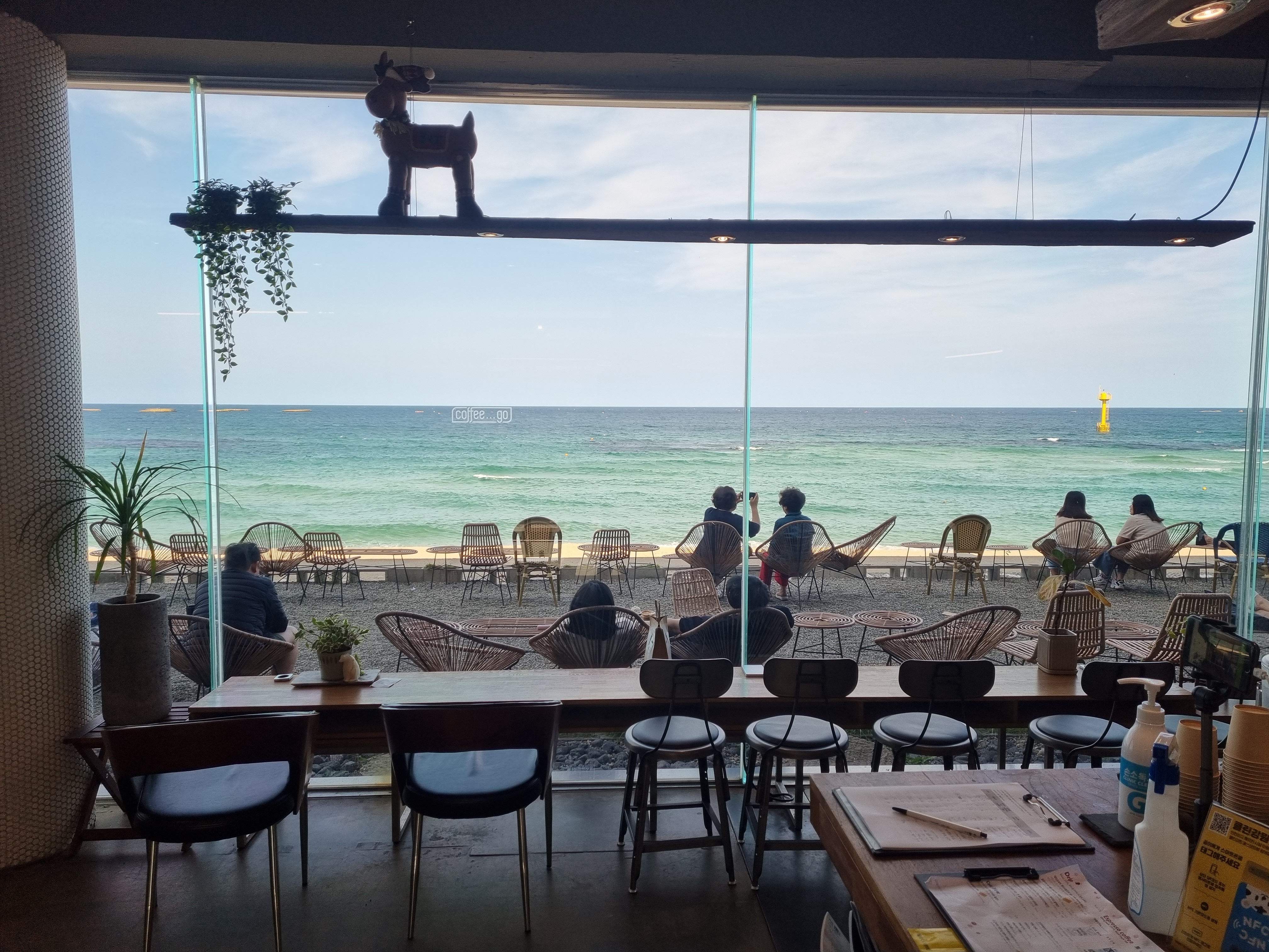 카페 커피고의 장점 중 하나는 모래사장과 바로 이어져 있다는 것입니다.