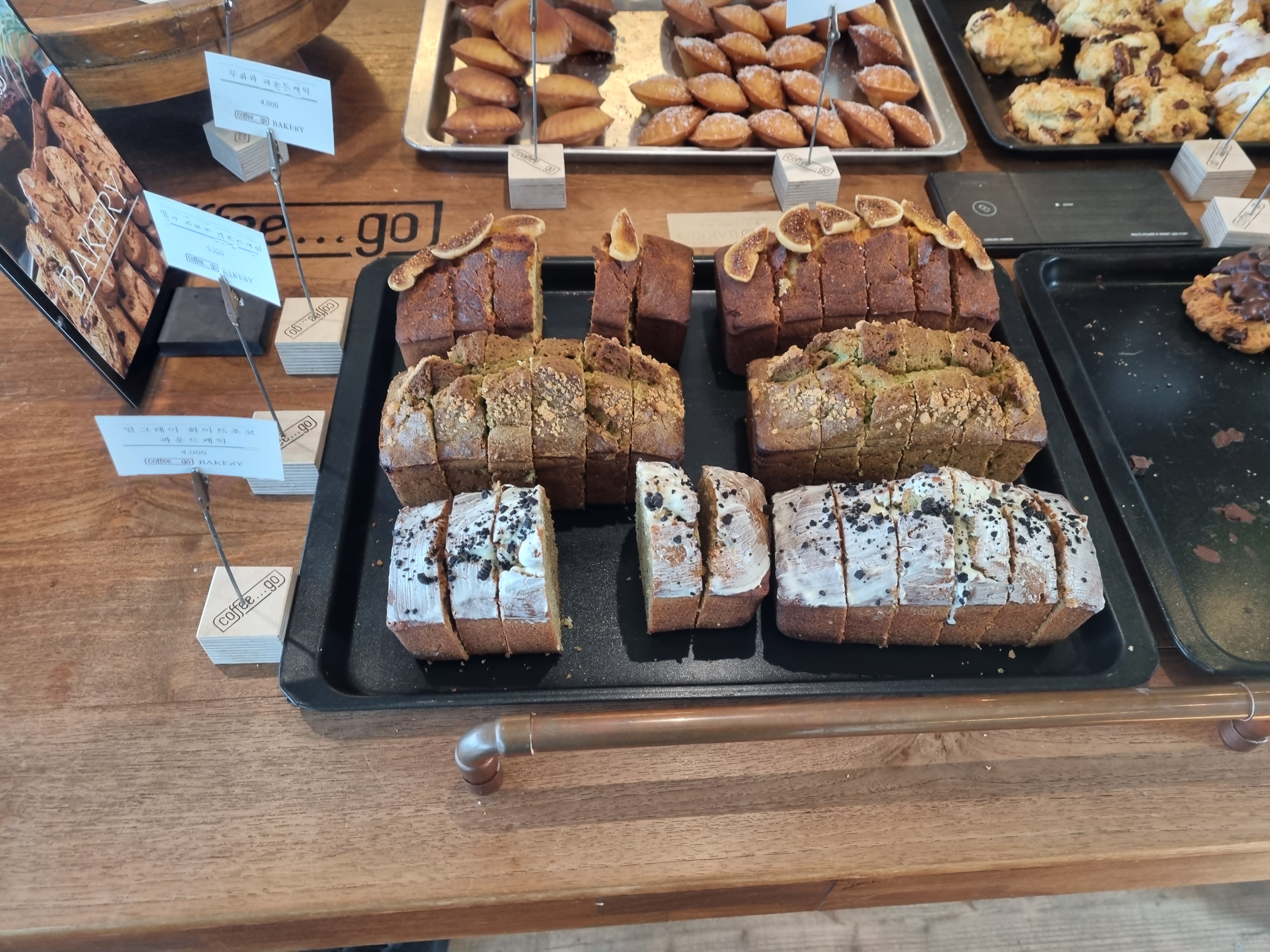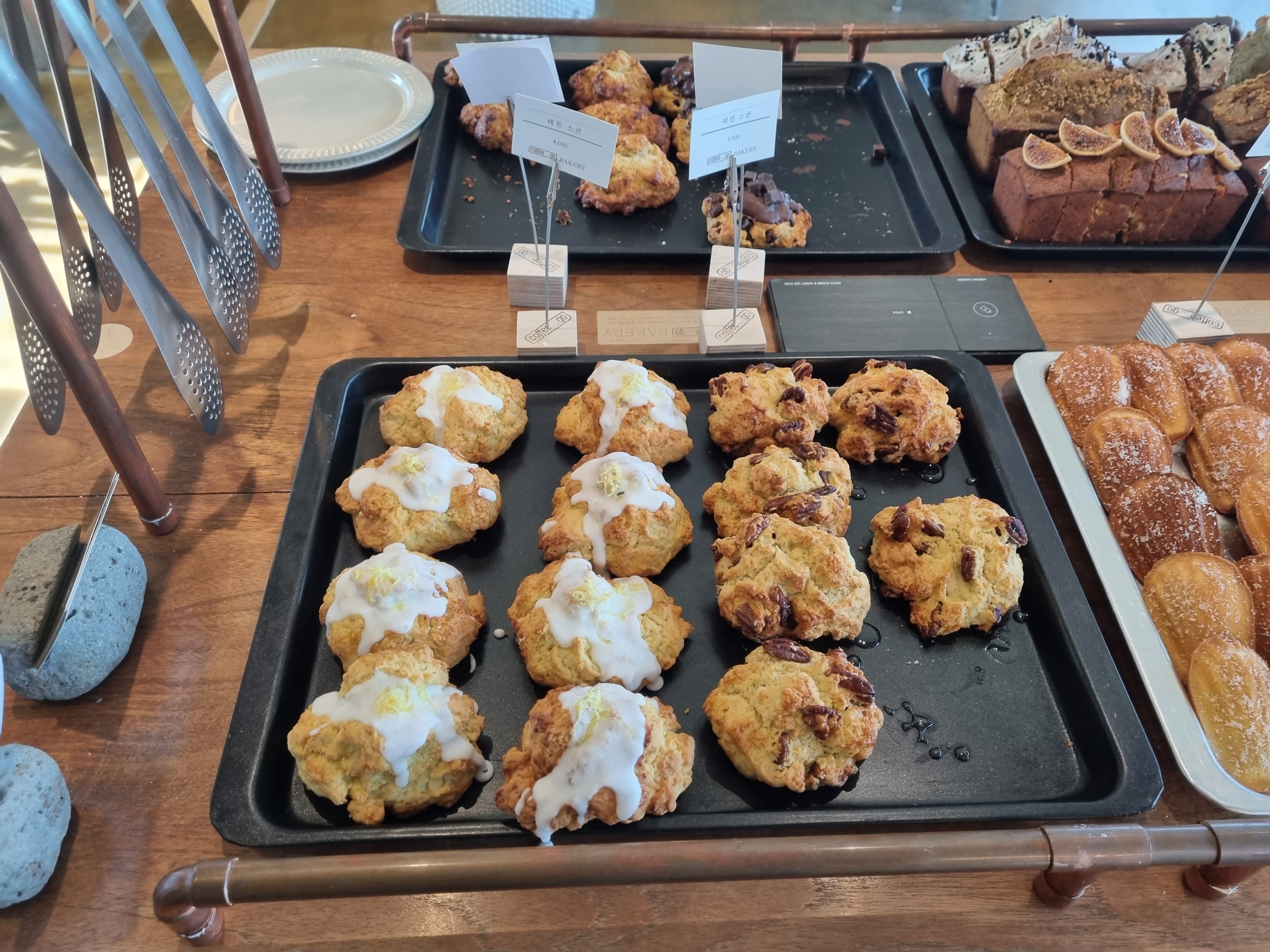 파운드 케익류(4,000원), 각종 스콘류(4,000원), 마들렌(2,000원)을 주 종목으로 판매하고 있었습니다.