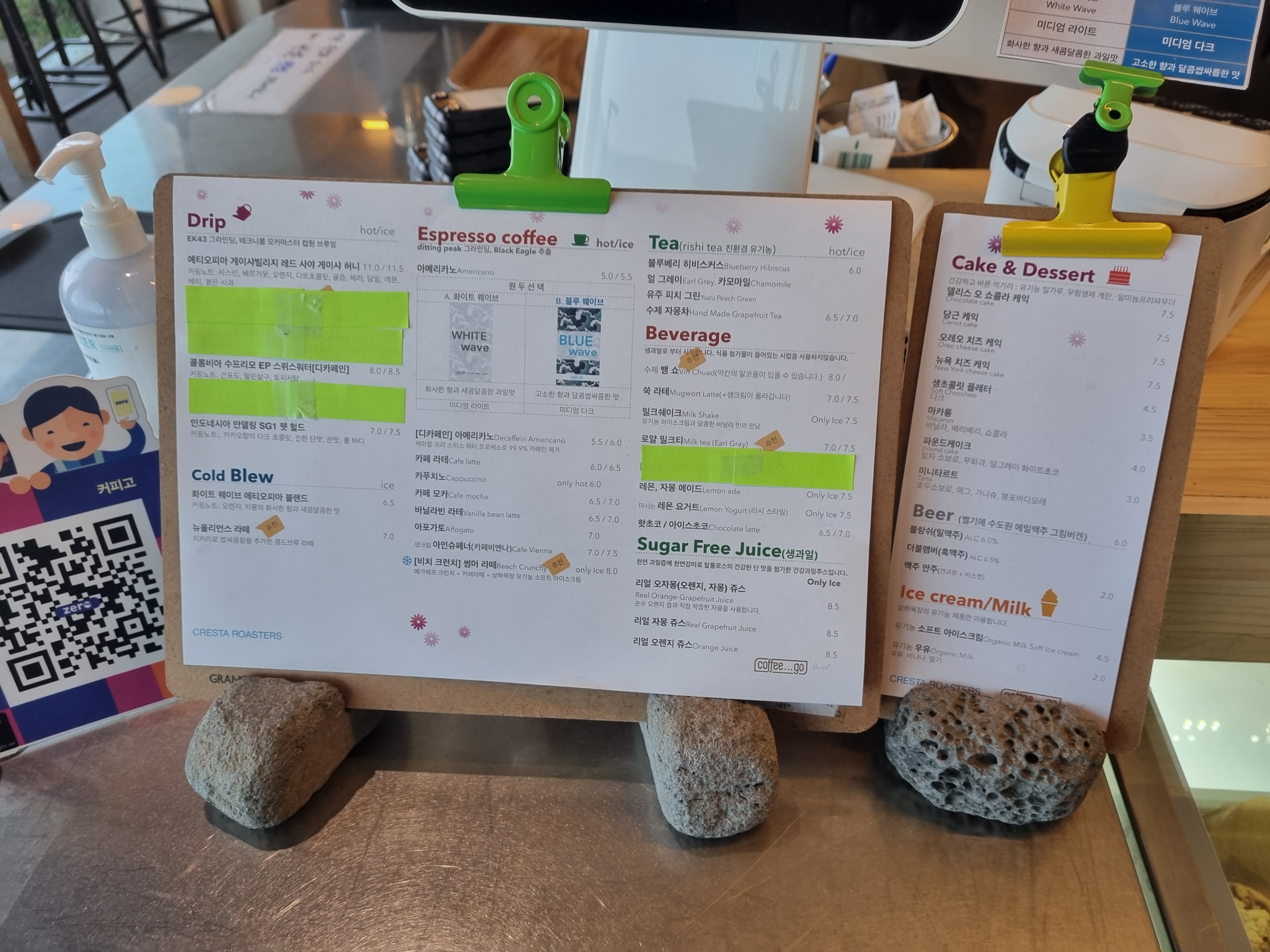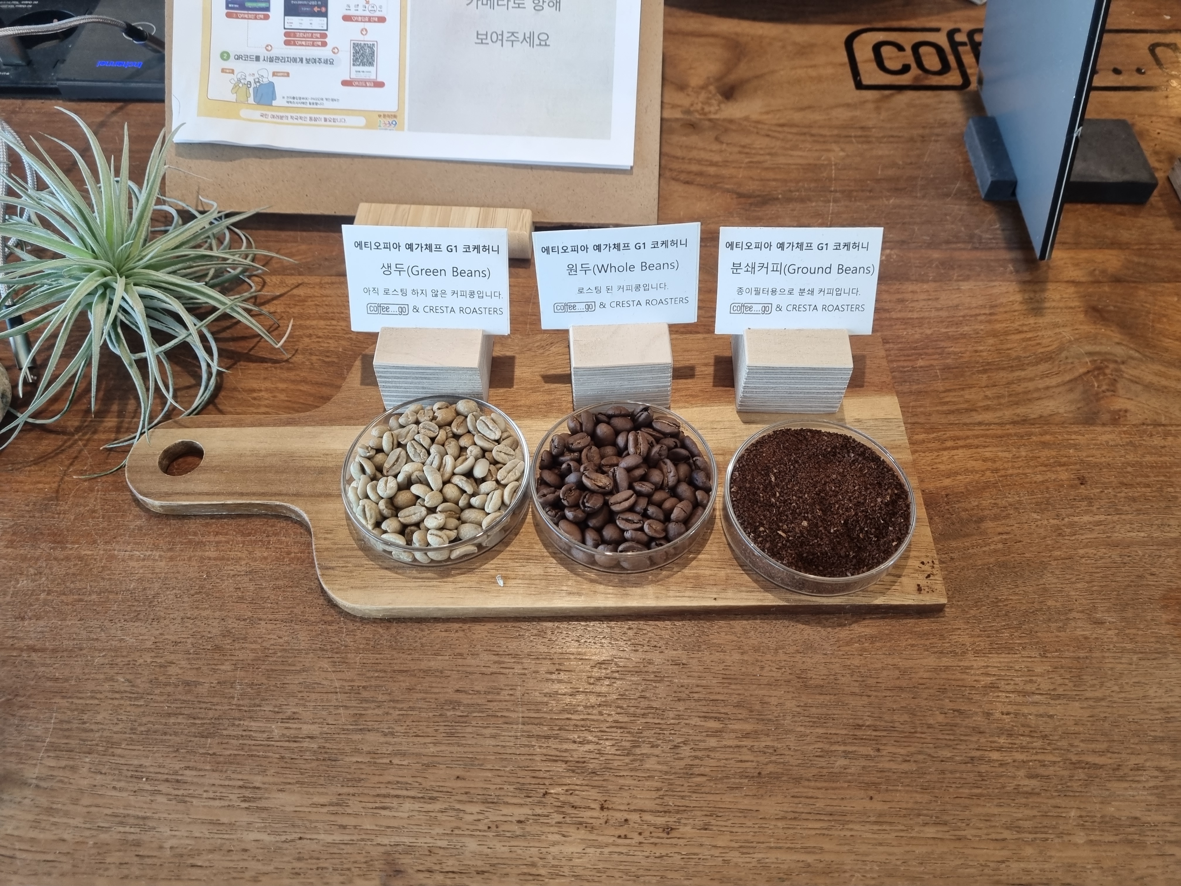 원두에 대한 예시와 샘플을 메뉴판 앞에 놓아두어서 선택에 도움을 주는 모습도 좋았습니다.