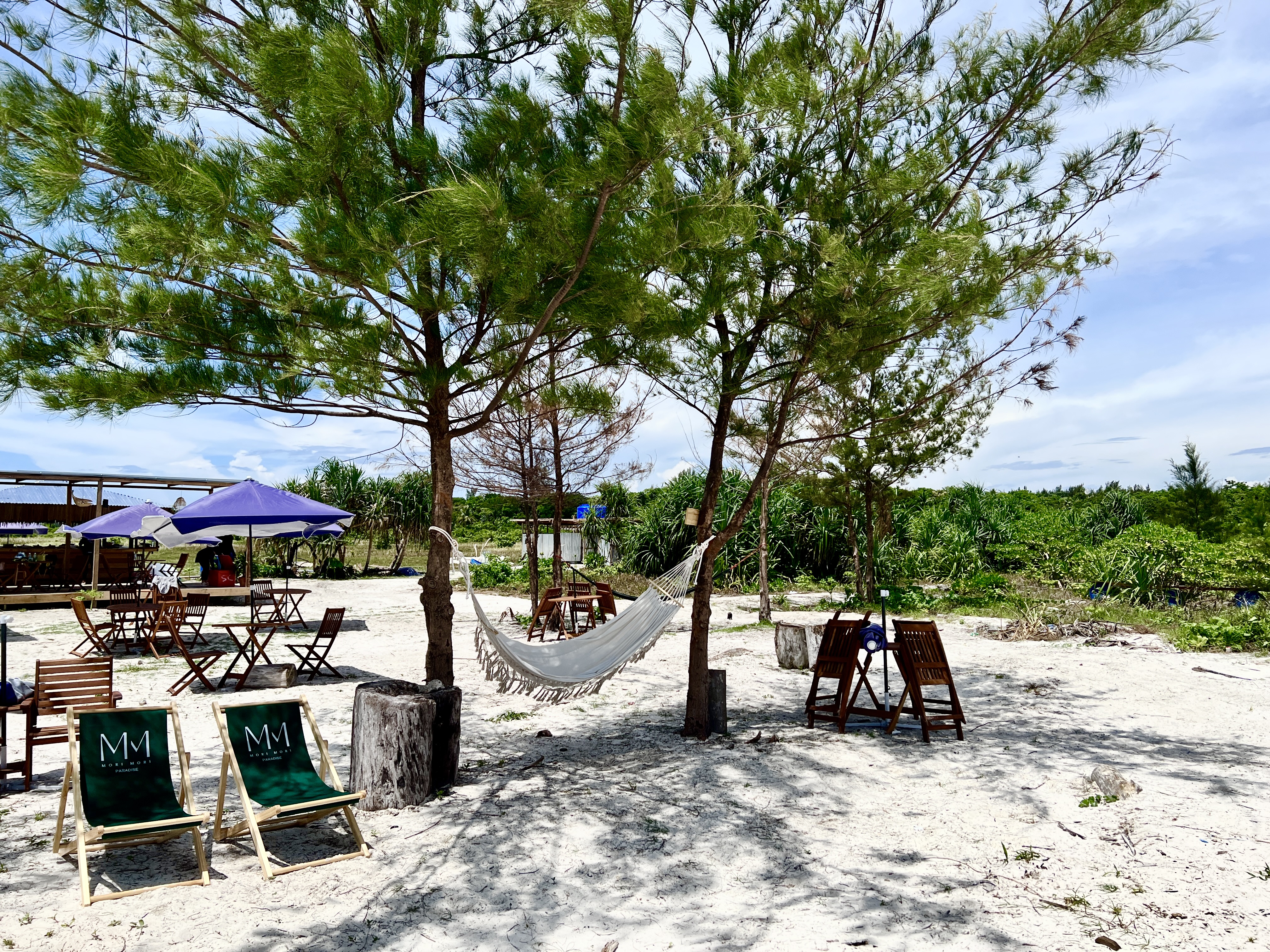 멍알룸은 인프라가 아직 부족하여 사피섬이나 마무틱 등의 섬투어 포스팅에서 볼 수 있는 선착장이 없습니다. 위 사진처럼 바닷가 근처에서 멈춰주는데 걸어서 들어가야 하니 처음부터 수영복을 입고 배에 탑승하시길 추천드립니다. 스노클링 전에 사진촬영하고 싶은 분들은 섬에 들어가면서 허벅지까지 올라오는 바닷길을 걸어 지나가야 한다는 점만 알아두시면 될 것 같습니다. 여기서 한 가지 팁을 드리자면 배가 정착하고 빠르게 하선하여 섬의 테이블로 이동하면 바닷가가 바로 보이는 앞 테이블을 맡을 수 있으니 사진 촬영은 우선 테이블에 짐을 내려놓고 하시길 추천드립니다.