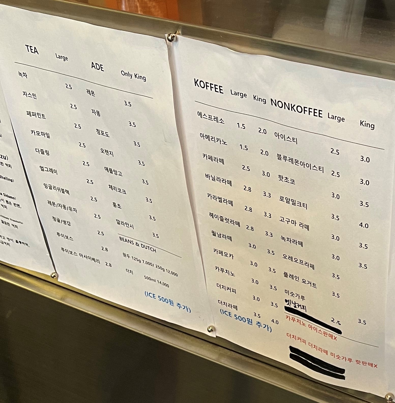 (아이스는 기존 음료 가격에서 +500원입니다.)