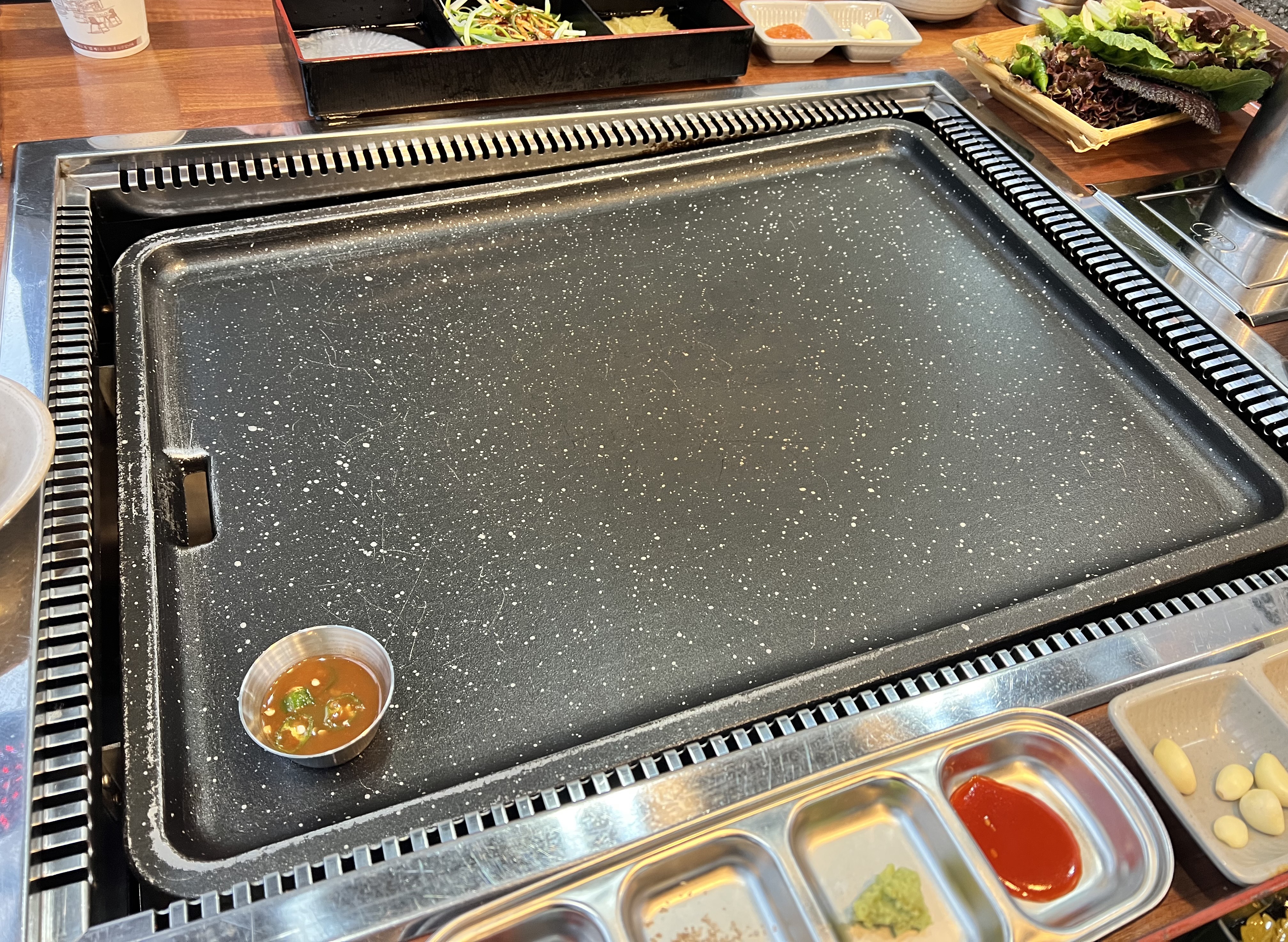 넓은 불판에 있던 모든 음식물을 먹어치웠지만