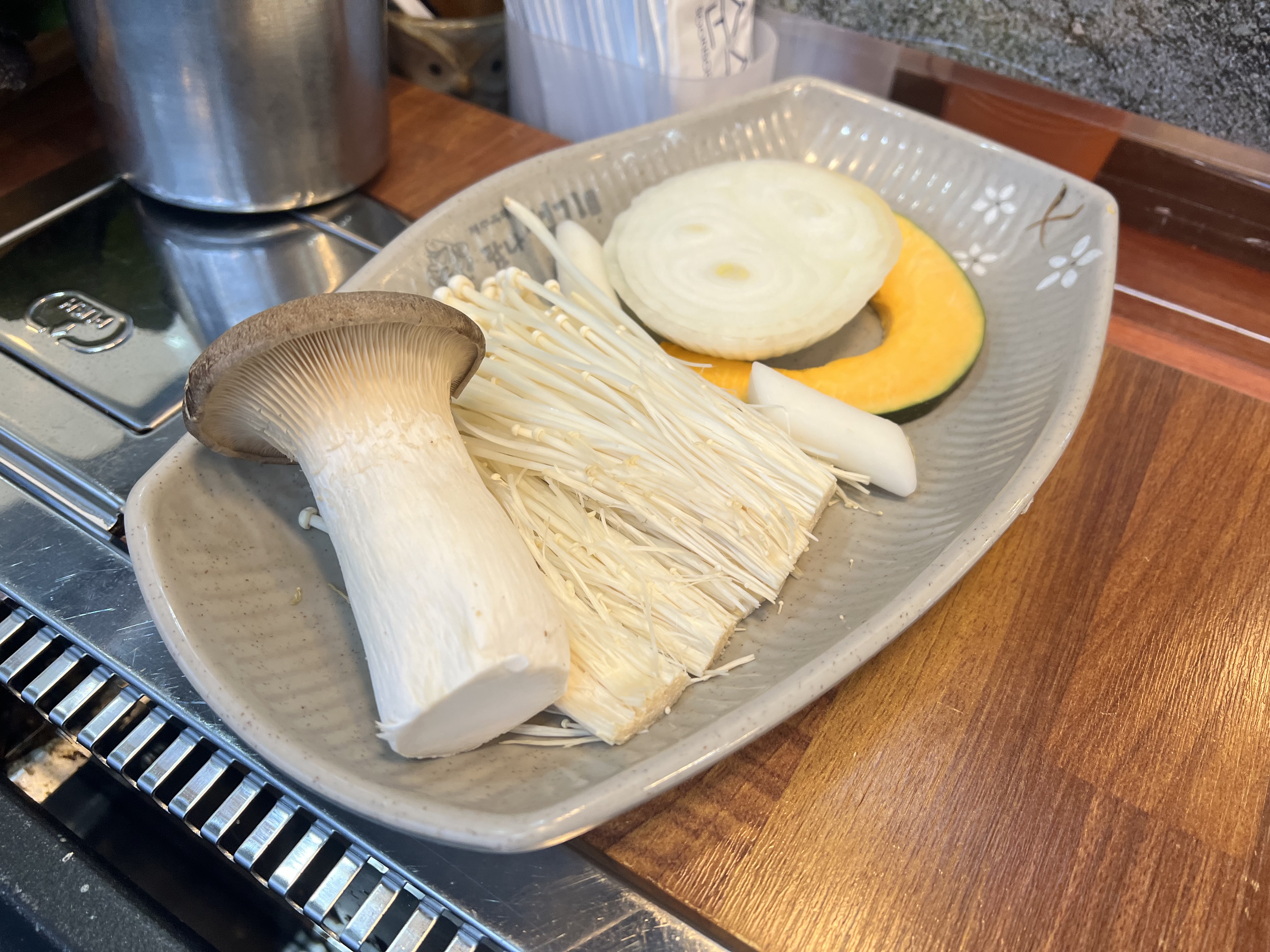 버섯, 양파, 단호박 및 쌈채소로 세팅은 마무리됩니다.