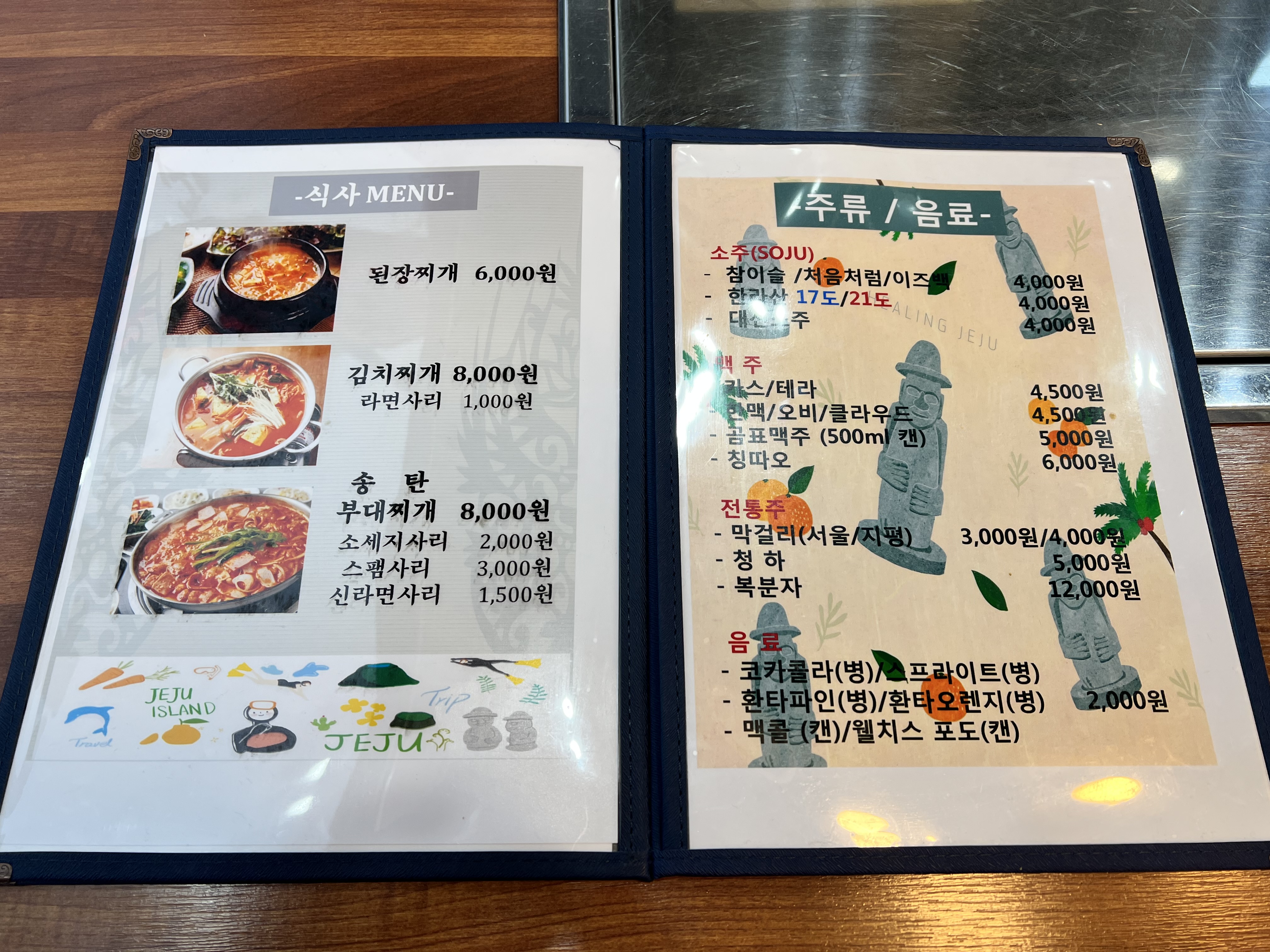 주류는 한라산과 대선소주, 칭따오, 곰표 맥주 등