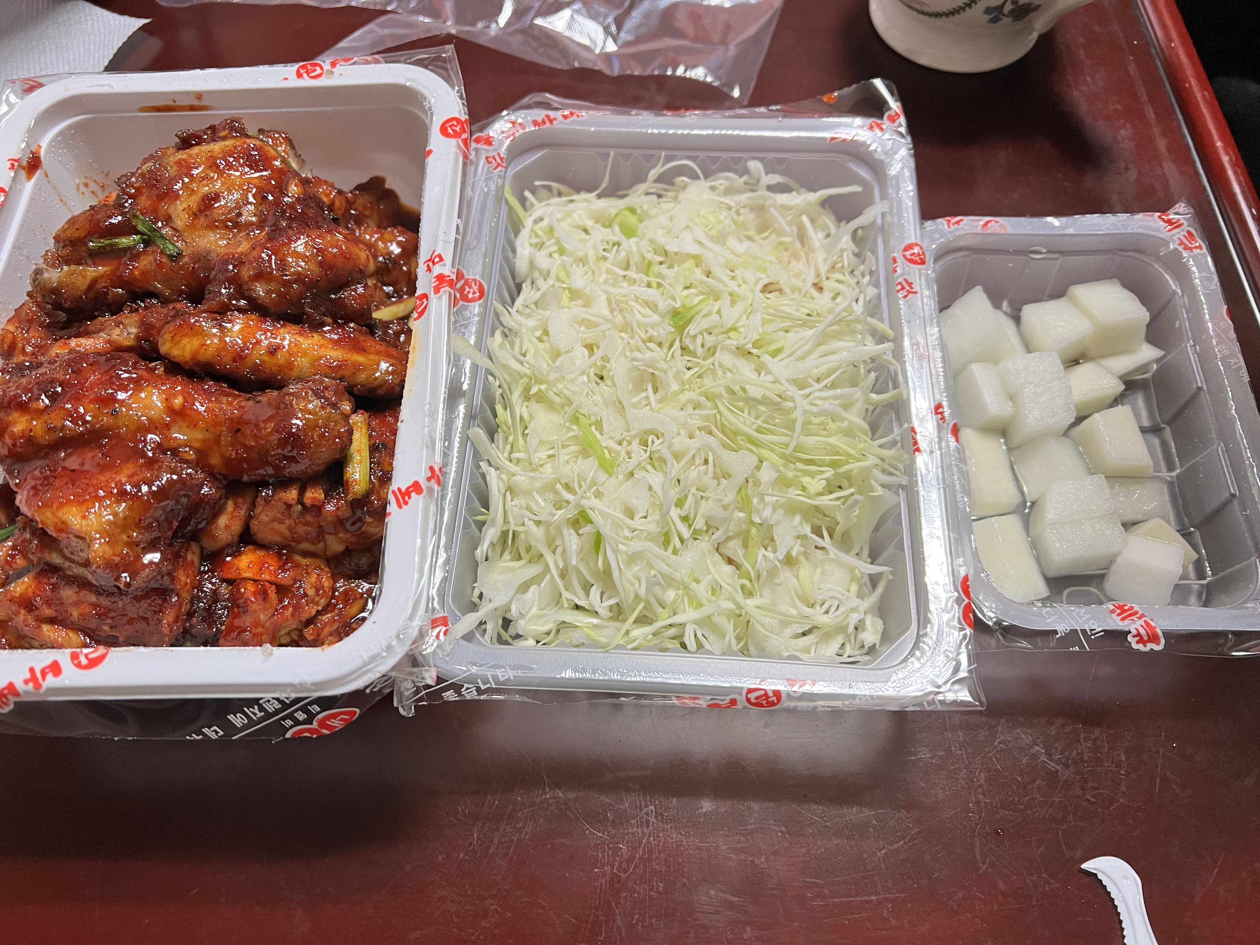 그런데 맛있게 매워서 치킨 한입에 양배추샐러드 또는 치킨무 또는 맥주와 함께하면 천상의 맛입니다.