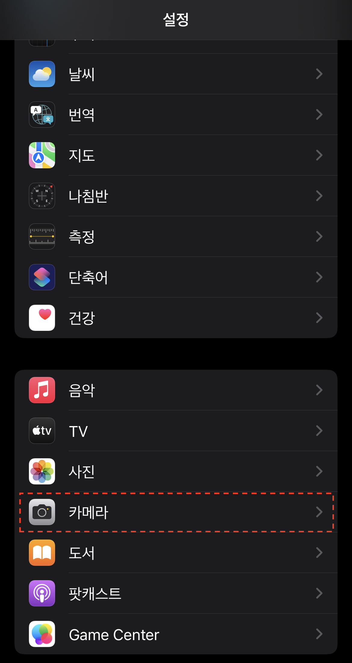 (1) 아이폰의 "설정 -> 카메라"로 이동합니다.
