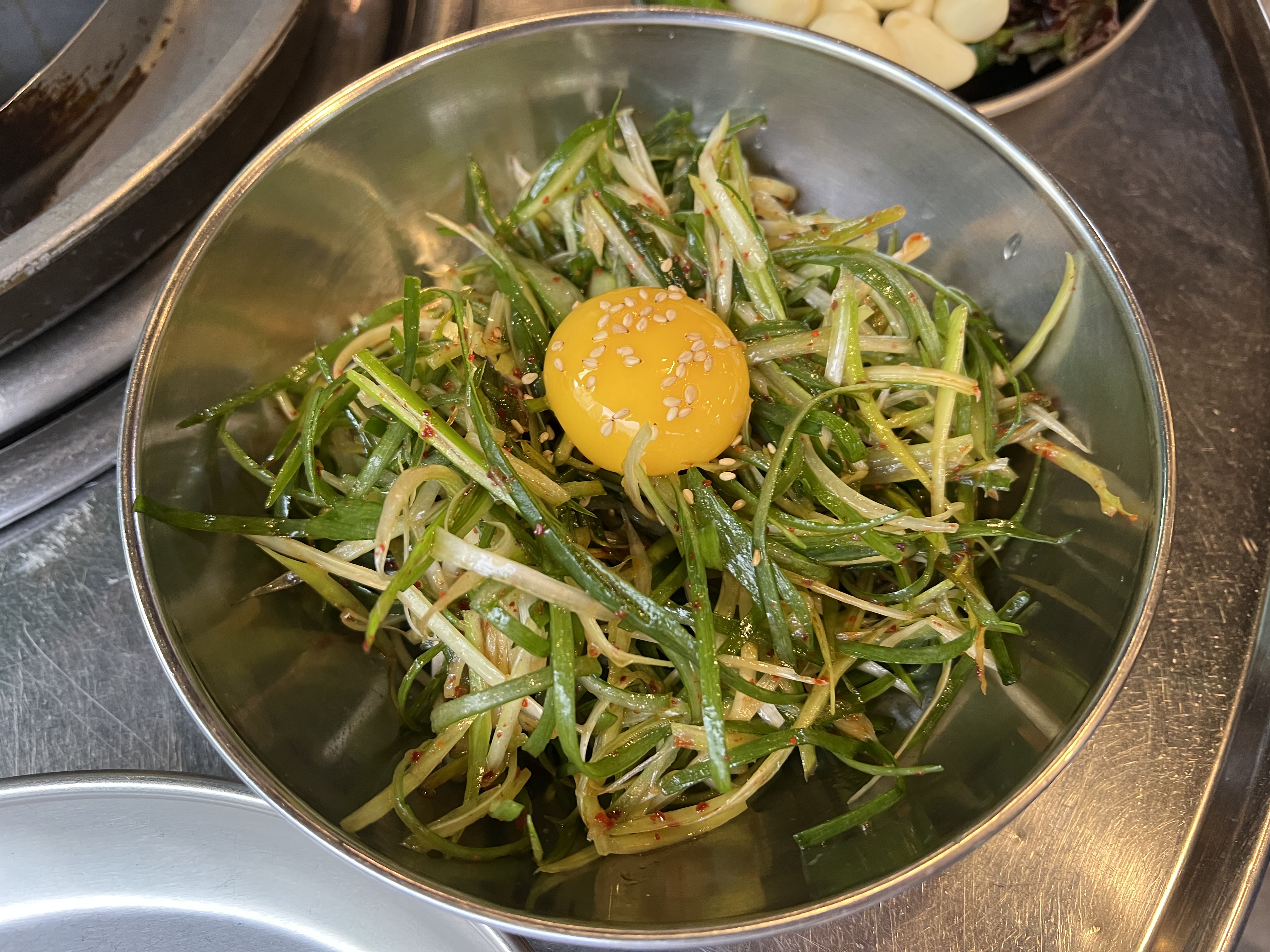 반찬 중에 계란 노른자가 올려져 있는 파무침이 굉장히 맛있었습니다.