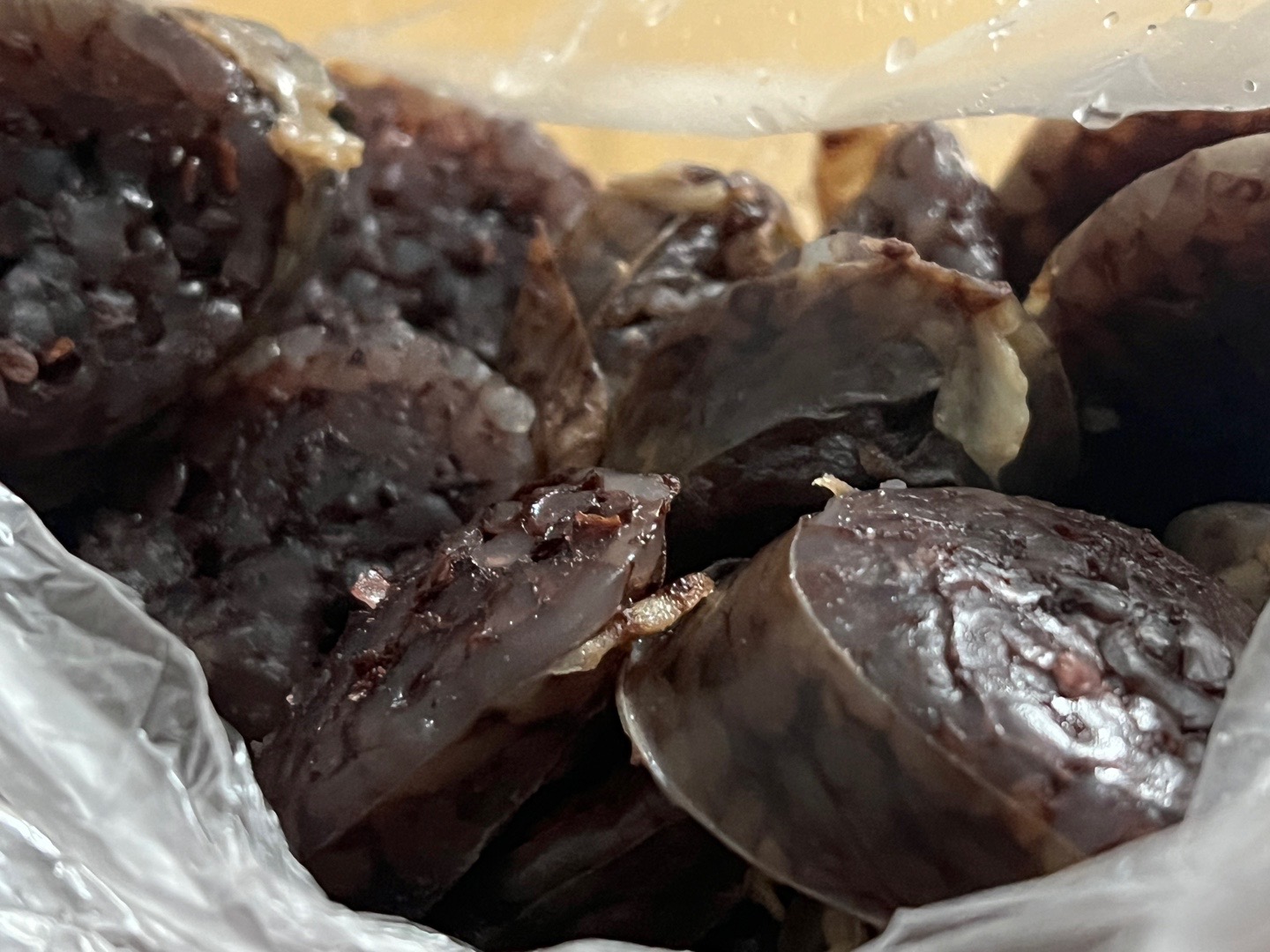 다음은 순대입니다. 요즘엔 순대에 당면 외에도 야채가 조금씩 들어간 순대를 많이 팔던데 이곳은 진정한 옛날 순대를 느낄 수 있습니다. 거의 90% 당면만 들어있는 찰순대입니다. 순대는 대부분 제품을 가져와서 쪄내 파는 것이라 맛을 논하기는 어렵지만 적당히 잘 삶아서 판매를 하고 계셨습니다.
