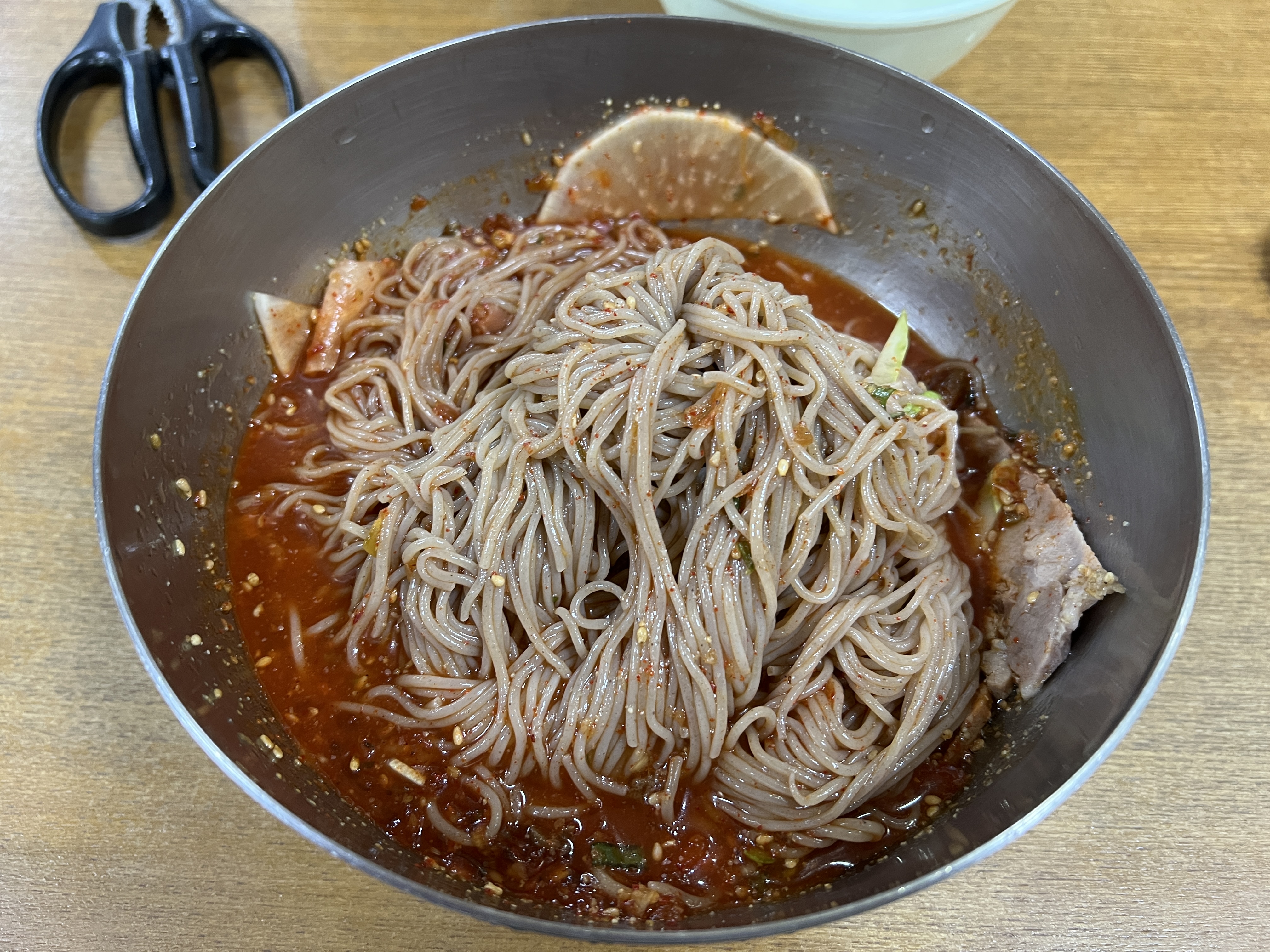 비벼서 먹어봤는데 자극적이지 않은 육수에 메밀면까지 더해지니 더욱 삼삼해졌습니다.