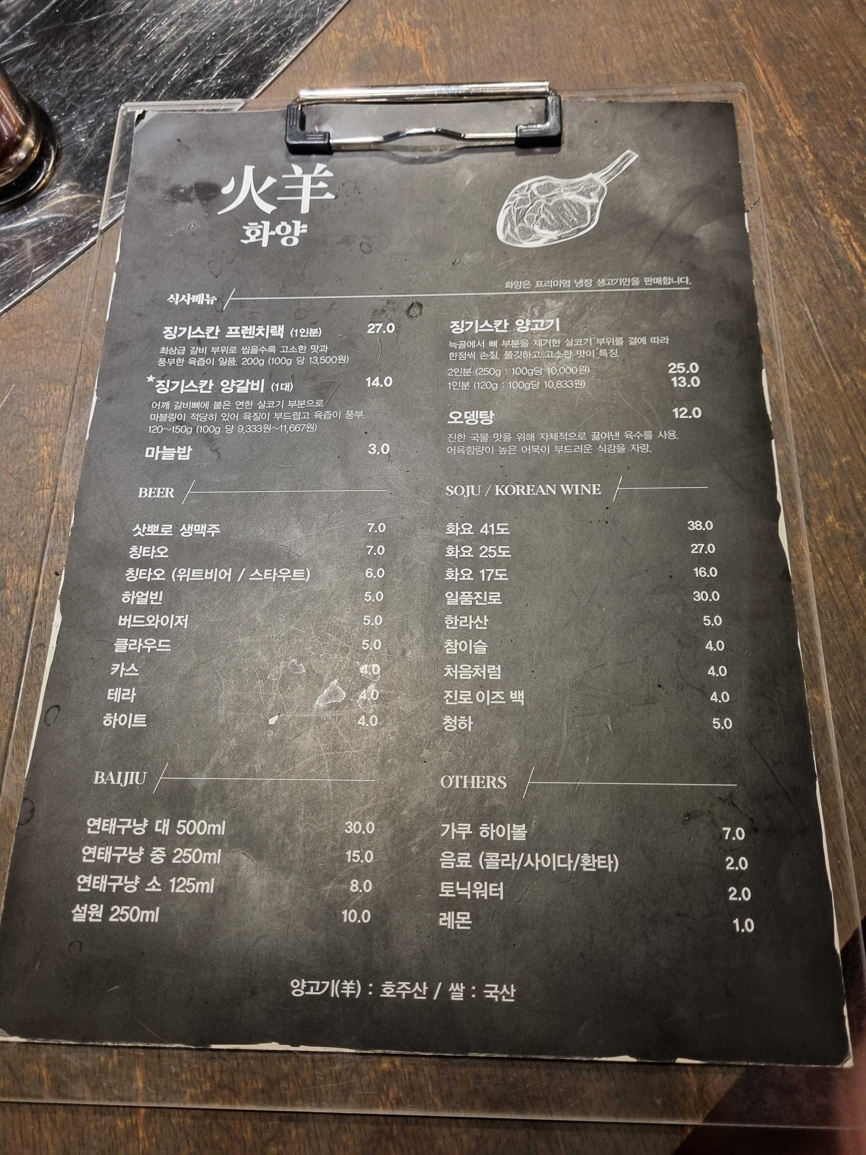 이제 산본 양갈비 양고기 맛집 화양 메뉴를 살펴보겠습니다.