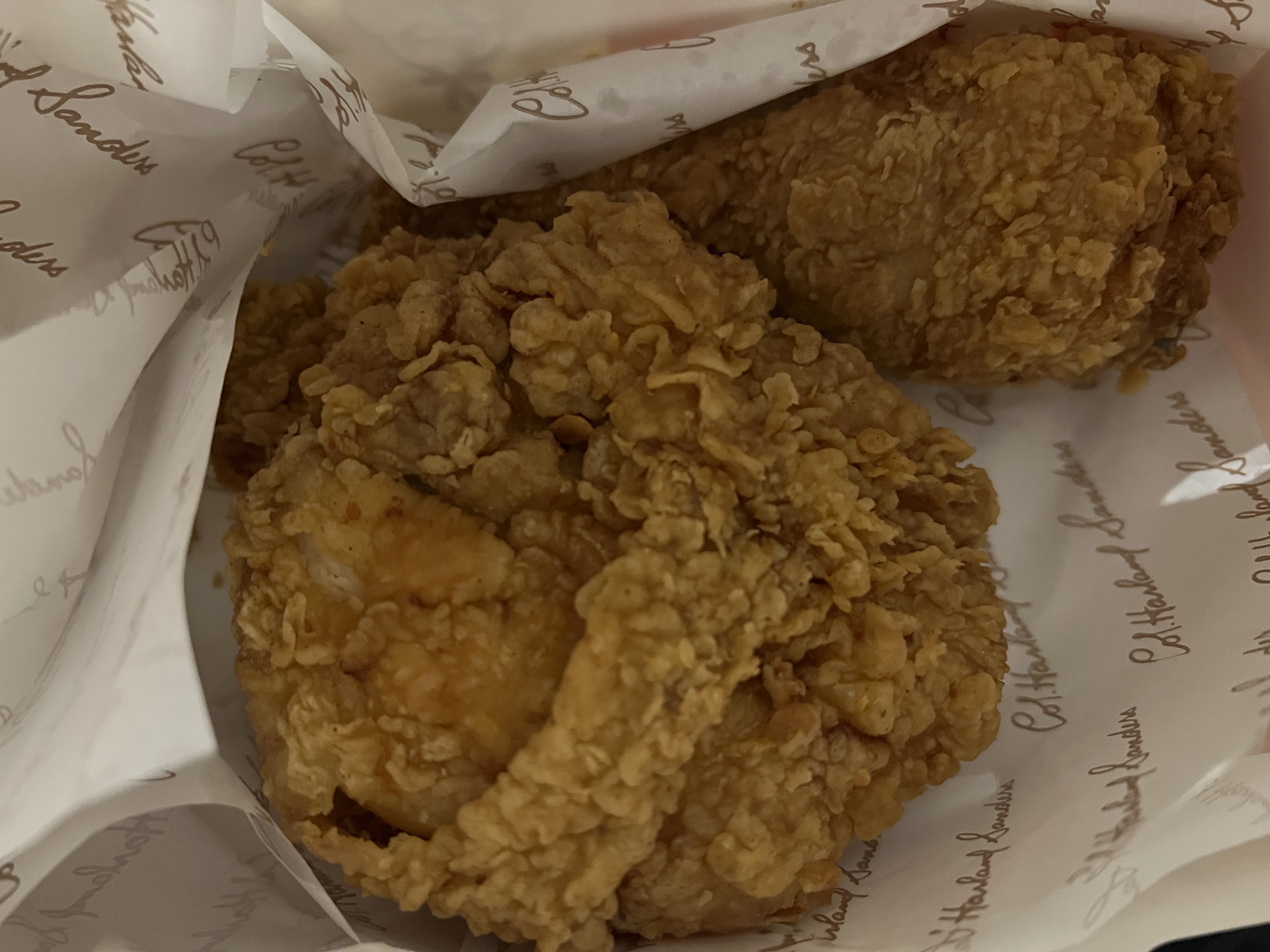KFC는 매장 방문 또는 징거벨 오더로 밤 9시 이후 치킨 1조각을 주문 시 1조각을 더 주는 치킨나이트를 운영하기 때문에 KFC 치킨의 레전드 핫크리스피도 1조각 주문하였습니다. 튀김도 바삭하고 짭짤함도 너무나 입맛에 맞아서 자주 먹고 있는데 다리만 2개 주지는 않고 닭가슴살 1조각 + 닭다리 1조각 이렇게 제공되었습니다. 닭다리야 말할 것도 없지만 닭가슴살 양도 많고 맛있어서 인상 깊었습니다.